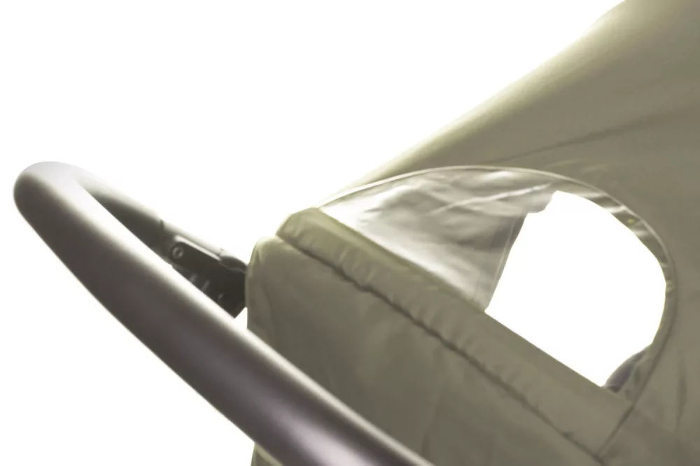 Nagyméretű bővíthető kupola betekintő ablakkal és hátsó tároló zsebbel