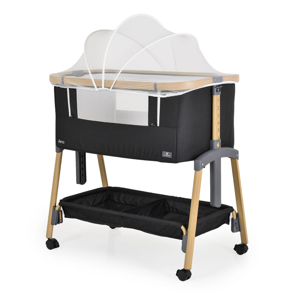 AMO babaöböl, 7 poziciós,szúnyoghálóval, tároló kosárral FEKETE