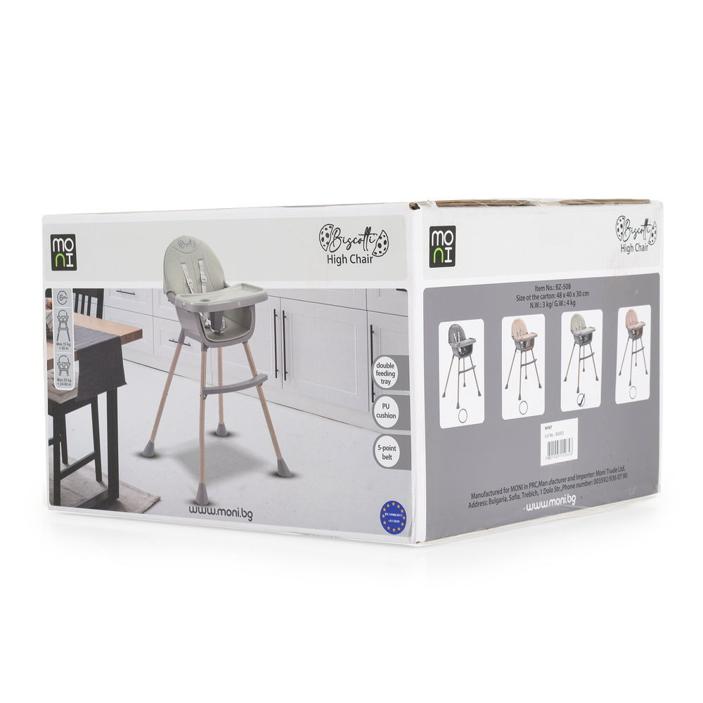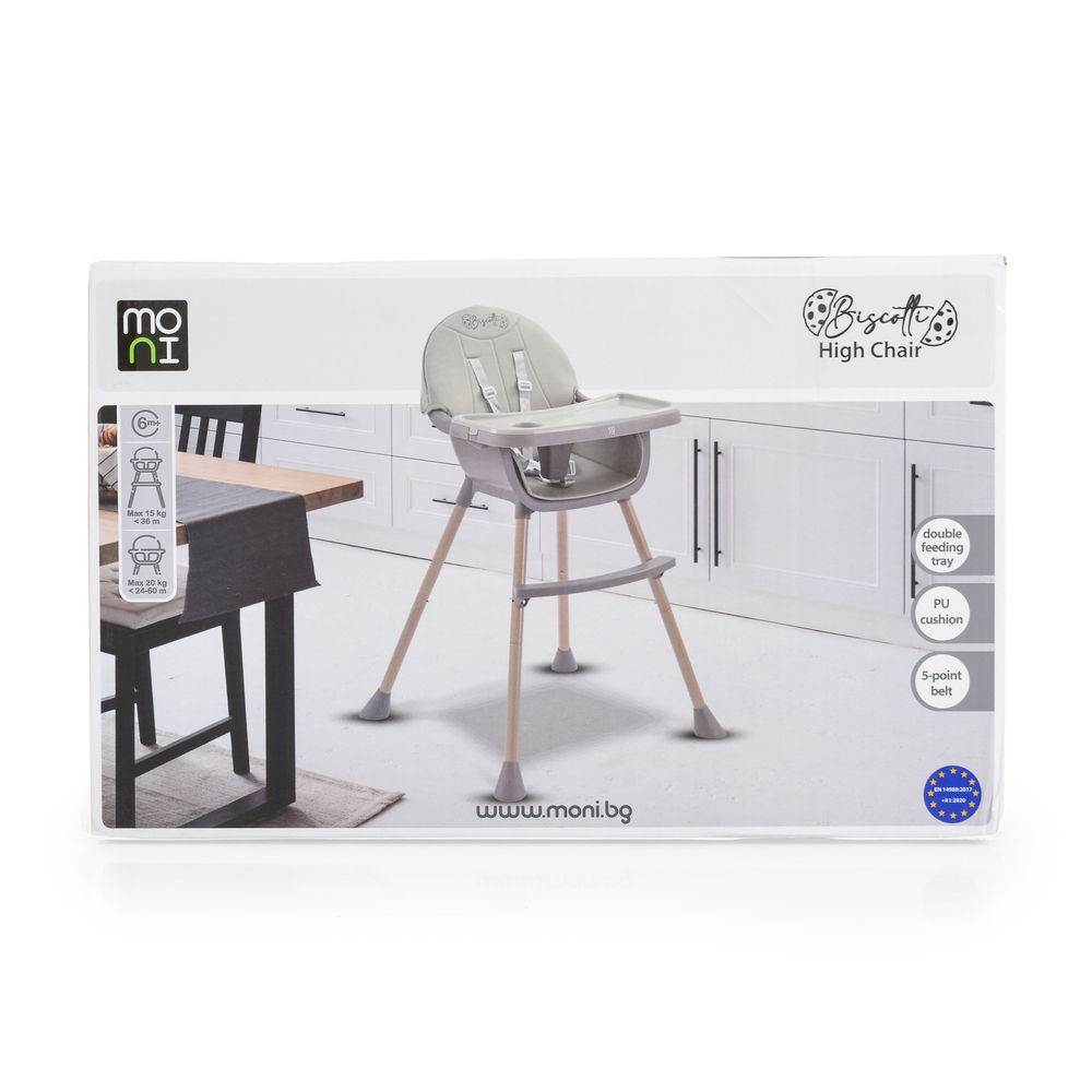 A MONI Biscotti egy olyan etetőszék, amely együtt nő a gyermekével - stabil etetőszékként kezdi, és az első önálló etetőszékké válik. A konyhaasztal melletti használatra alkalmas, így már egészen kicsi korától kezdve egészséges szokásokat alakít ki, és minden étkezést különleges pillanattá tesz, amelyet megoszthatnak anyával és apával.