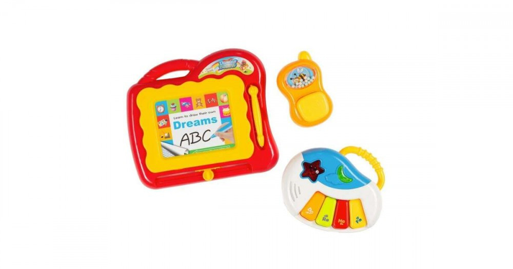 Kis zongorával, amely hangokat ad ki, dallamokat játszik és világít. Kiváló minőségű műanyagból készült.