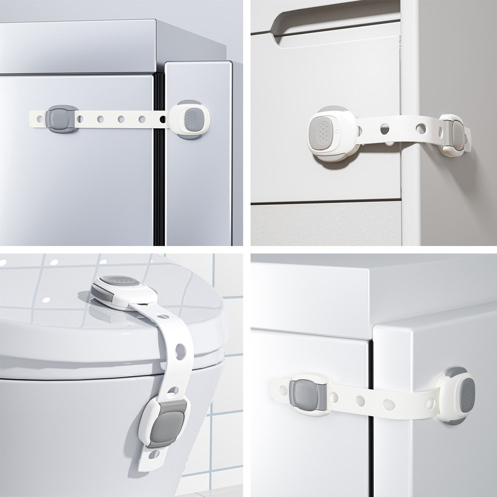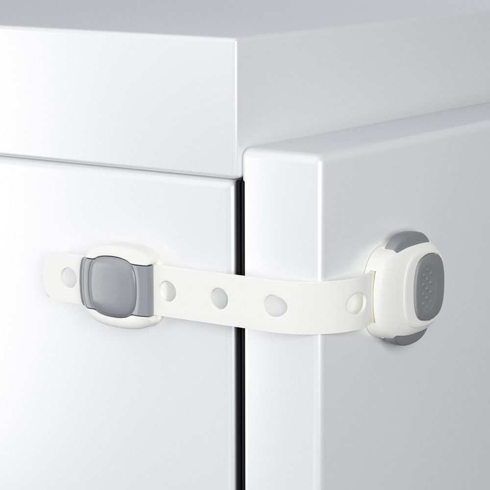 Egyszerű és biztonságos nyitómechanizmus, reteszelő rendszerrel.A gyerekzár többek között szekrények, fiókok, vitrinek, WC-k, hűtőszekrények zárvatartására alkalmas.Minden felelős szülő számára gyermeke biztonsága a legfontosabb. Kiváló minőségű bútorvédőink olyan kisgyermekek számára készültek, akik aktívan felfedezik közvetlen környezetüket. Tartós, egyszerű kialakítású védőeszközeink segítségével minden gardrób, fiók és szekrény tartalma egyetlen gyermek számára sem lesz elérhető. Ez az univerzális és robusztus zár erős 3M ragasztószalaggal van felszerelve, így Ön nem sérti meg a bútor felületét.• Egyszerű és biztonságos nyitási mechanizmus reteszelő rendszerrel• A zár többek között alkalmas szekrényekhez, komódokhoz, bizonyos fiókokhoz, vitrinekhez, WC-khez, hűtőszekrényekhez• Az erős 3M ragasztószalag nem károsítja a felületet, és különféle anyagokra rögzíthető, mint pl. műanyag, fa, üveg vagy fém. Ha a zárra már nincs szükség, könnyen eltávolítható• Az állítható pánt segítségével a zárat az igényeinek megfelelően állíthatja be• Ha a zárra már nincs szükség, könnyen eltávolítható.MEGFELELŐ AZ EN 16948 BIZTONSÁGI SZABVÁNYNAK• Méretek: 23 x 4,6 cm• Erős 3M ragasztószalaggal rögzíthető• Biztonságos anyagokból készültA csomagolás 2 db zárat tartalmaz.