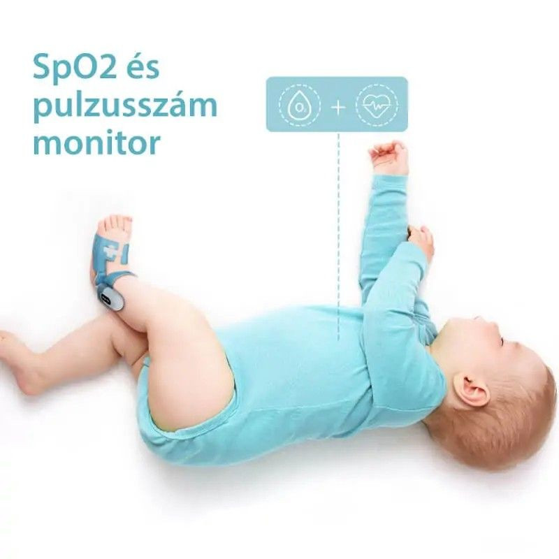 -Folyamatos légzésfigyelés, alvásminőség kimutatással: a baba véroxigénszintje, pulzusszáma és mozgása. A beállított küszöbérték esetén riasztást kapunk!