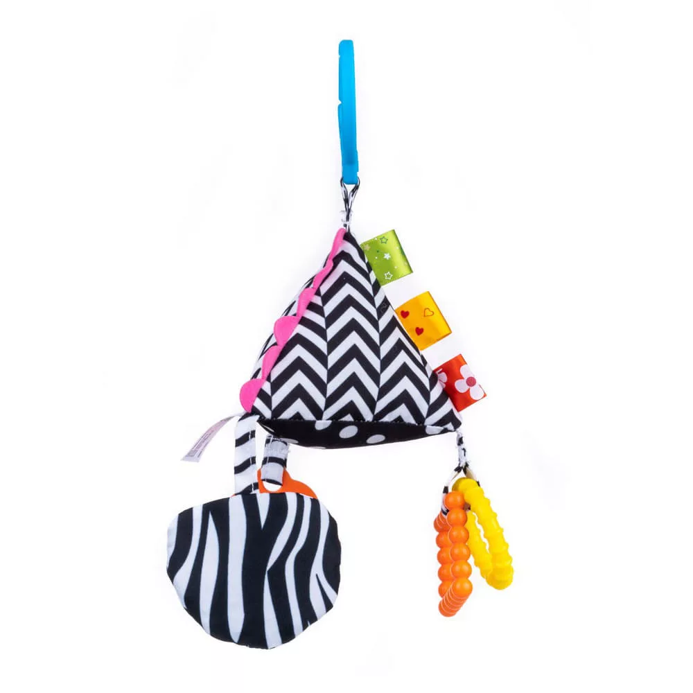 Egy Érzéki Piramissal felfedezheted a különböző anyagok textúráit és csodálhatod az ellentétes mintákat. A játék színes rágókkal van díszítve és praktikus csattal, amely lehetővé teszi, hogy bárhová csatold a címkét.