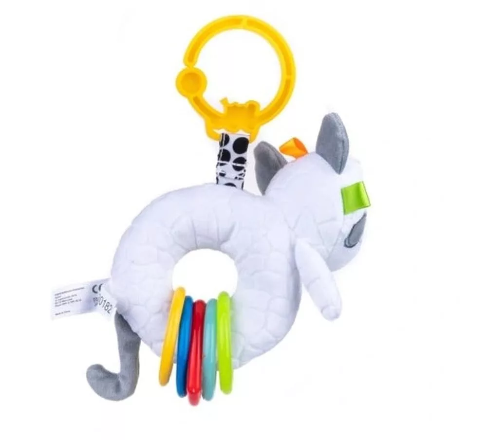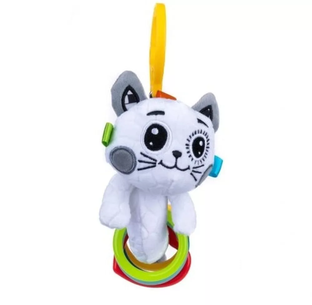 Egy vicces, ellentétes cica ellopja a babád szívét! A feje különböző textúrájú címkékkel van díszítve, a hasa pedig színes körökkel van díszítve, amelyek vidáman csörögnek rázásra.