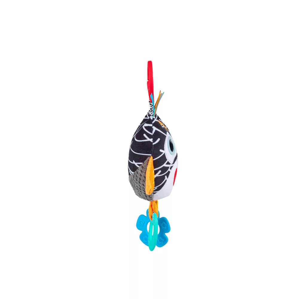 A bagoly formájú játék igazi dísze lesz bármely babakocsinak, vagy ágynak egy újszülött számára. A bagoly különböző textúrájú anyagokból készült, amelyek hozzájárulnak a babafejlődéséhez, és pozitívan befolyásolják a kognitív képességeinek fejlődését. A játékhoz két fogzási fájdalmakat enyhítő rágóka tartozik, amelyek megnyugtatja a baba fájós ínyét a fogzáskor. A praktikus karika lehetővé teszi, hogy a baglyot bárhova felakaszthassa. A termék újszülött kortól használható