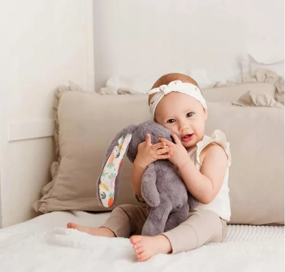 Egy bájos nyuszika hosszú fülekkel minden pillanatban elvarázsolja a babádat! Lehet társ és ölelgetni való játék is, amely elringat az álmok világába. A nyuszika puha szőre olyan, hogy az ember csak ölelni szeretné! A termék születéstől ajánlott gyermekeknek.