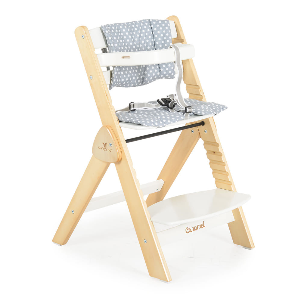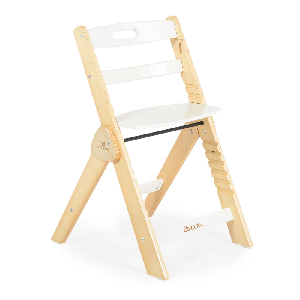 A Caramel fa etetőszék 3 ülés- és 6 lábtámasz-szinttel rendelkezik.
