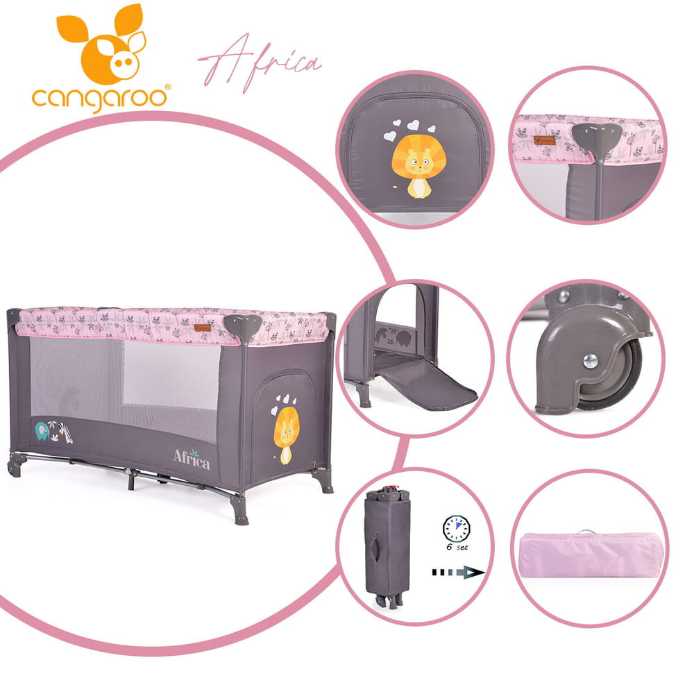 Cangaroo Africa 1 szintes utazóágy 14 kg pink