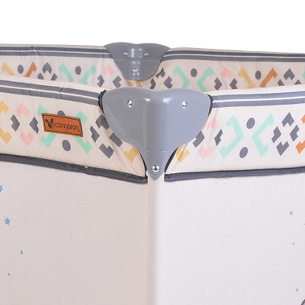 Ez a bézs színű BOHO járóka a CANGAROO márkától tökéletes kiegészítője lesz a babaszobának, vagy akár utazás során is. A járóka 15 kg súlyú, és 86,4 cm magasságú gyermek számára ideális, tehát rendkívül stabil és biztonságos. A könnyedén összehajtható és szállítható mechanizmusa miatt nem lesz gond a tárolása sem. Egy 1,5 cm vastag matrac is tartozik hozzá, így biztosítva a kicsi kényelmét. A körkörös háló lehetővé teszi, hogy mindig szemmel tartsd a gyermeket, miközben ő felfedezi a körülötte lévő világot. Emellett egy dupla biztonsági összehajtó rendszer is gondoskodik arról, hogy a járóka mindig stabil maradjon. A bézs szín pedig igazán elegánssá és stílusossá teszi a járókát, ami tökéletesen illeszkedik majd a babaszoba berendezéséhez.