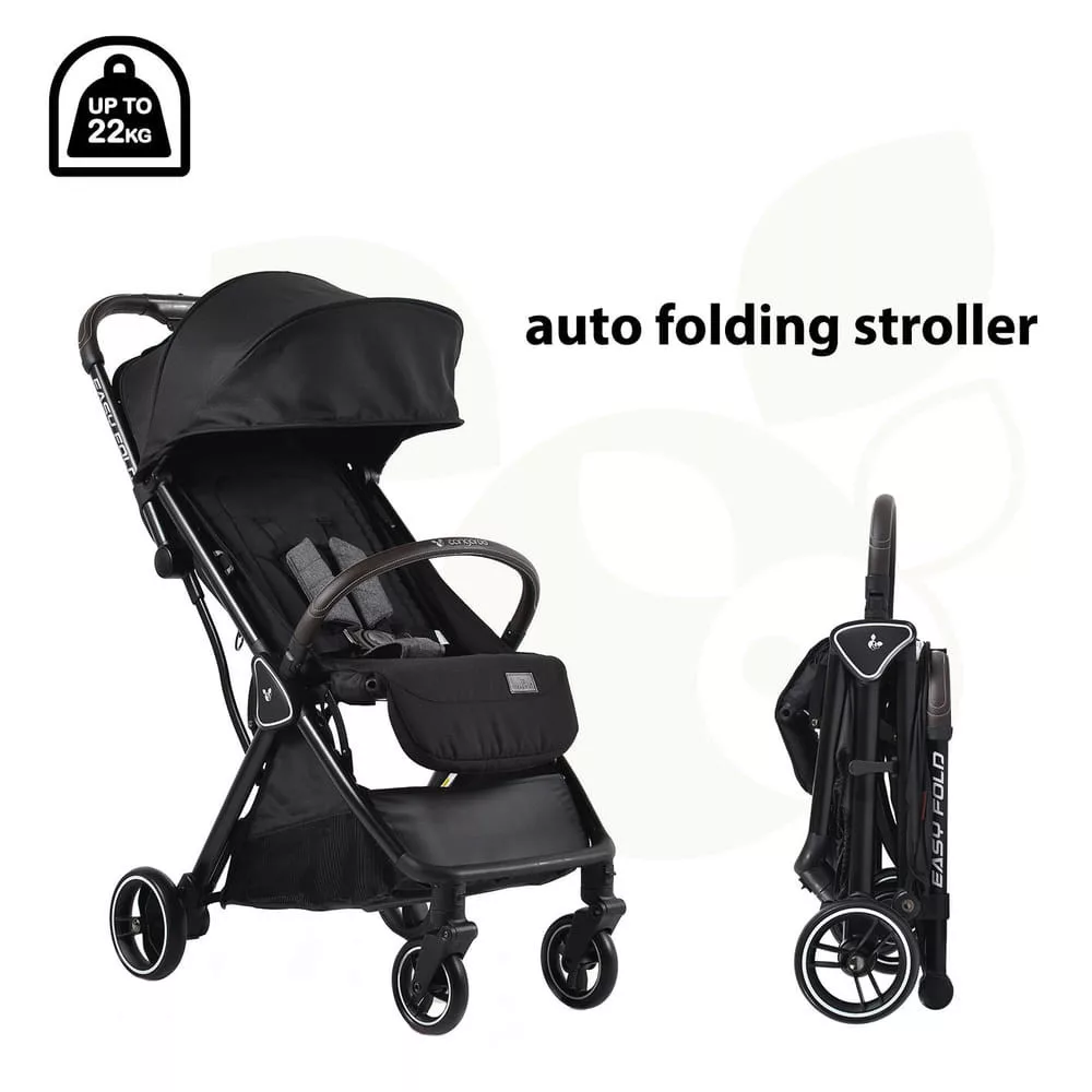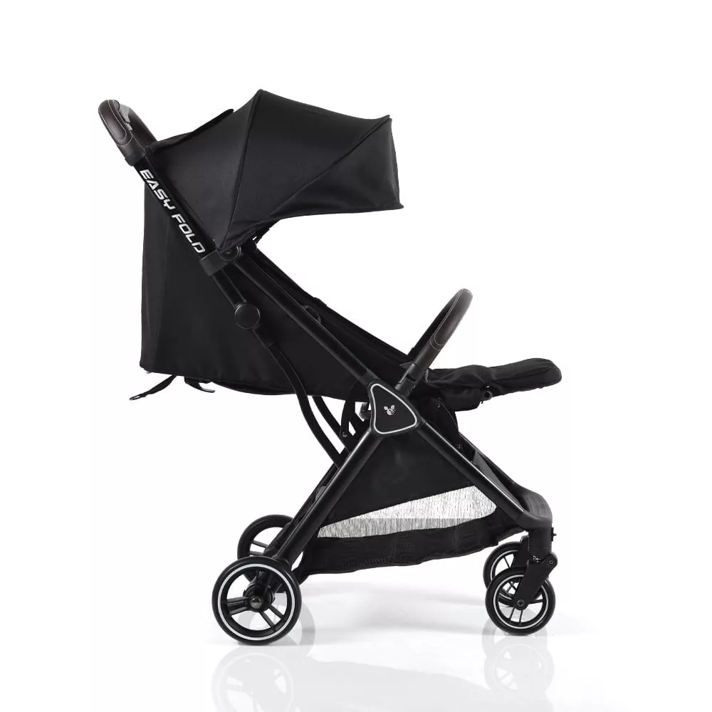 Az Easy fold babakocsi rendkívül kompakt. könnyű és modern és Innovatív és rendkívüli összecsukható rendszer, hogy valóban leegyszerűsítse az életét: nyomja meg a gombot a fogantyún, és a babakocsi magától összecsukódik. Születéstől kb 22 kg-ig használható. A váz alumíniumból készült, így könnyű és tartós. Az első kerekek 360 fokban forognak, reteszelési lehetőséggel. A modell ernyővel van felszerelve, amely megvédi a gyermeket az erős napfénytől. A háttámla több pozícióban állítható, a biztonságról pedig az 5 pontos biztonsági öv gondoskodik. A modell állítható lábtartóval, levehető karfával és huzattal rendelkezik.