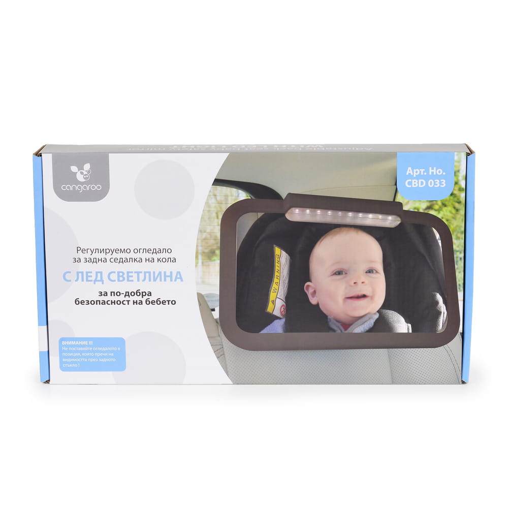 A CANGAROO LED-es babatükör tökéletes választás minden olyan szülőnek vagy gondozónak, aki szeretné, hogy utazás közben is szemmel tudja tartani a kicsit. A tükör LED fénye és távirányítója segít abban, hogy még sötétben is jól láthassuk a babát. Az univerzális rögzítőkön köszönhetően könnyedén felszerelhető bármilyen autóba. A tükör nagy méretű, így tökéletesen látható rajta a baba. Nem csak a biztonság, de a baba komfortérzete is fontos, ezért a tükör kialakításánál figyelembe vették, hogy ne zavarja a babát. A LED fény lágy, kellemes fényt ad, ami nem zavarja a babát, de mégis elég fényt biztosít, hogy jól lássuk őt. Távirányítójával egyszerűen szabályozható a fény erőssége.
