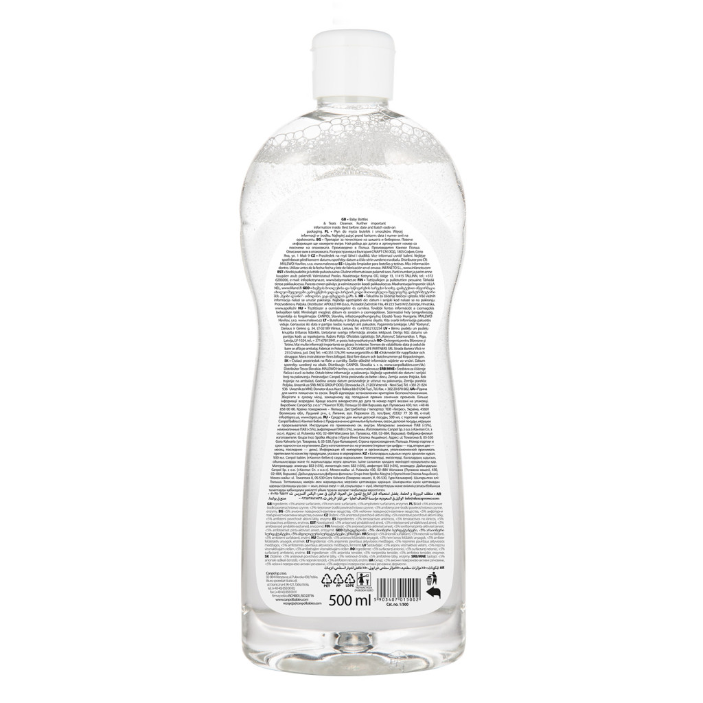 A környezetbarát mosószer cumisüvegekhez és etetőcumikhoz a csecsemők egészségét és biztonságát szem előtt tartva készült. Hipoallergén, színtelen és 97%-ban természetes összetevőket tartalmaz. Hatékonyan eltávolít minden tejet, gyümölcslevet, zabkását és ételmaradékot. Könnyen leöblíthető. A mosószer kíméletes a kézhez, a bőr számára semleges pH-jú és bőrgyógyászatilag tesztelt. Kis mennyiség is elegendő a kiegészítők, például cumisüvegek, cumik, babatálak, játékok és mellszívó alkatrészek hatékony tisztításához. A Canpol babies környezetbarát cumisüveg- és cumisüveg-tisztítószer rendelkezik az EU ökocímkével - a környezetbarát, magas minőségi és egészségügyi előírásoknak megfelelő termékeknek odaítélt hivatalos európai tanúsítvánnyal: PL/019/009.