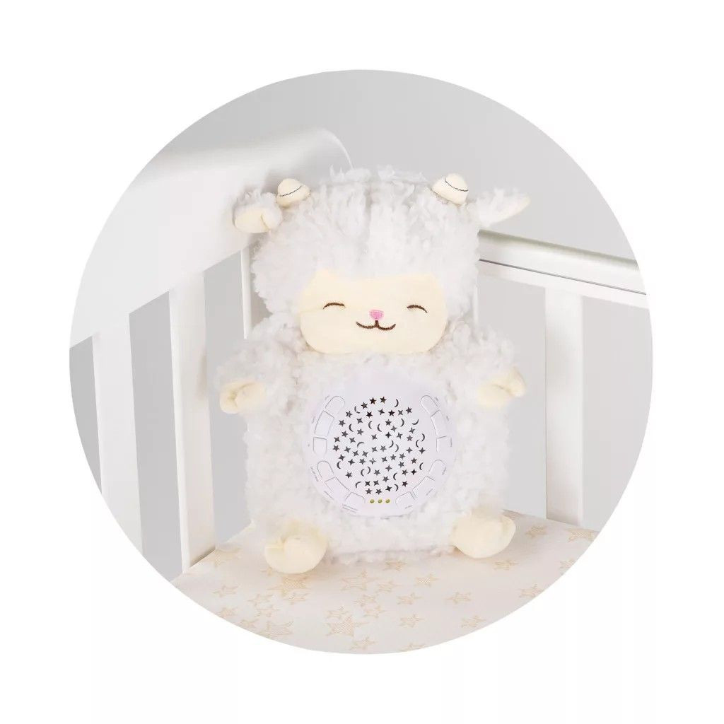 Kedves és nyugtató bárány pajtás alváshoz. Beépített altató dallamokkal és fénnyel.