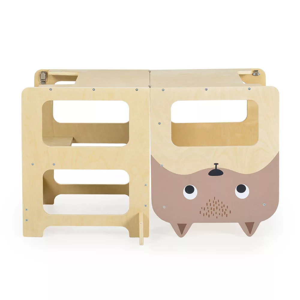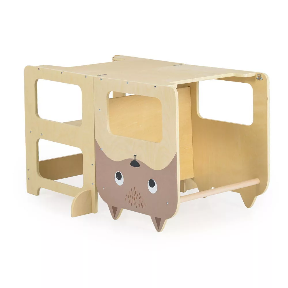 - A torony könnyen átalakítható kis asztallá paddal, ahol a gyermek rajzolhat, játszhat, ehet vagy más kreatív tevékenységeket végezhet.