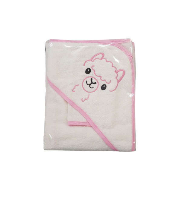 Vaganza hímzett fürdőlepedő, fürdetőkesztyűvel / 80×80cm – Láma
