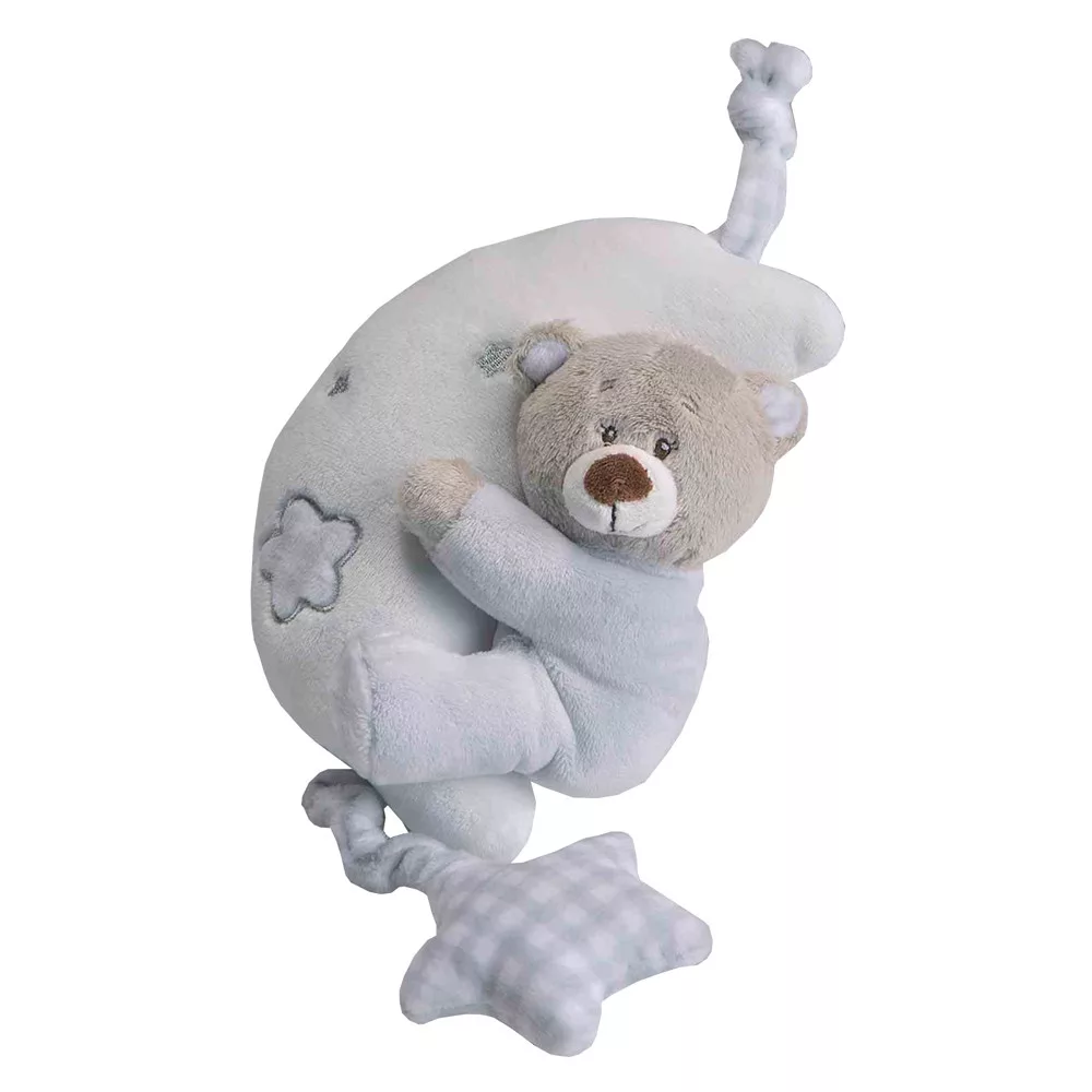 Gyermeked imádni fogja ezt a félholdon csücsülő macit mert ha alul meghúzod a csillagot akkor egy gyönyörű dallamot hallhatsz a baba szórakoztatására és pihentetésére.