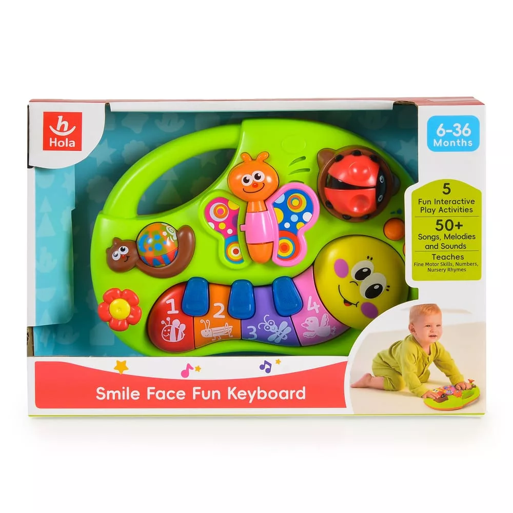 HOLA bébijáték, kukacka mosolygós, zenélő, világító gombokkal ZÖLD