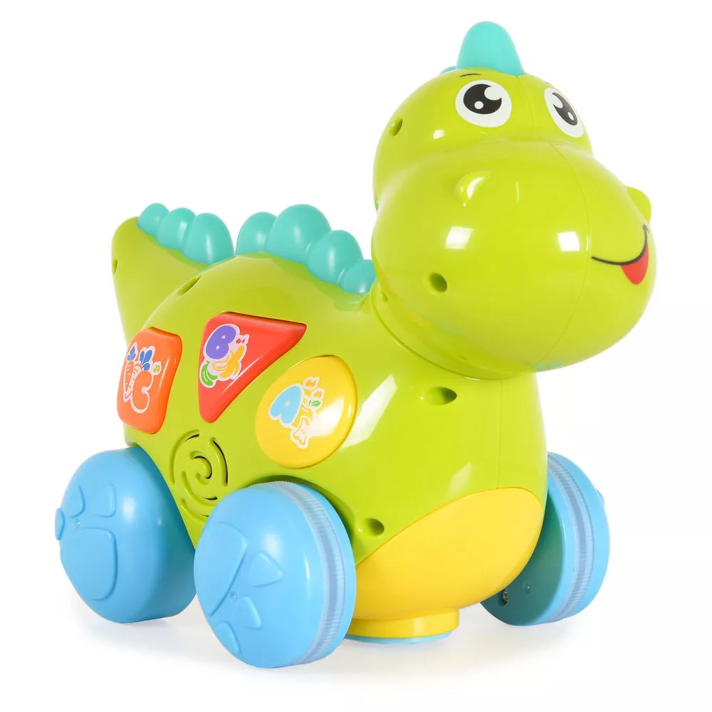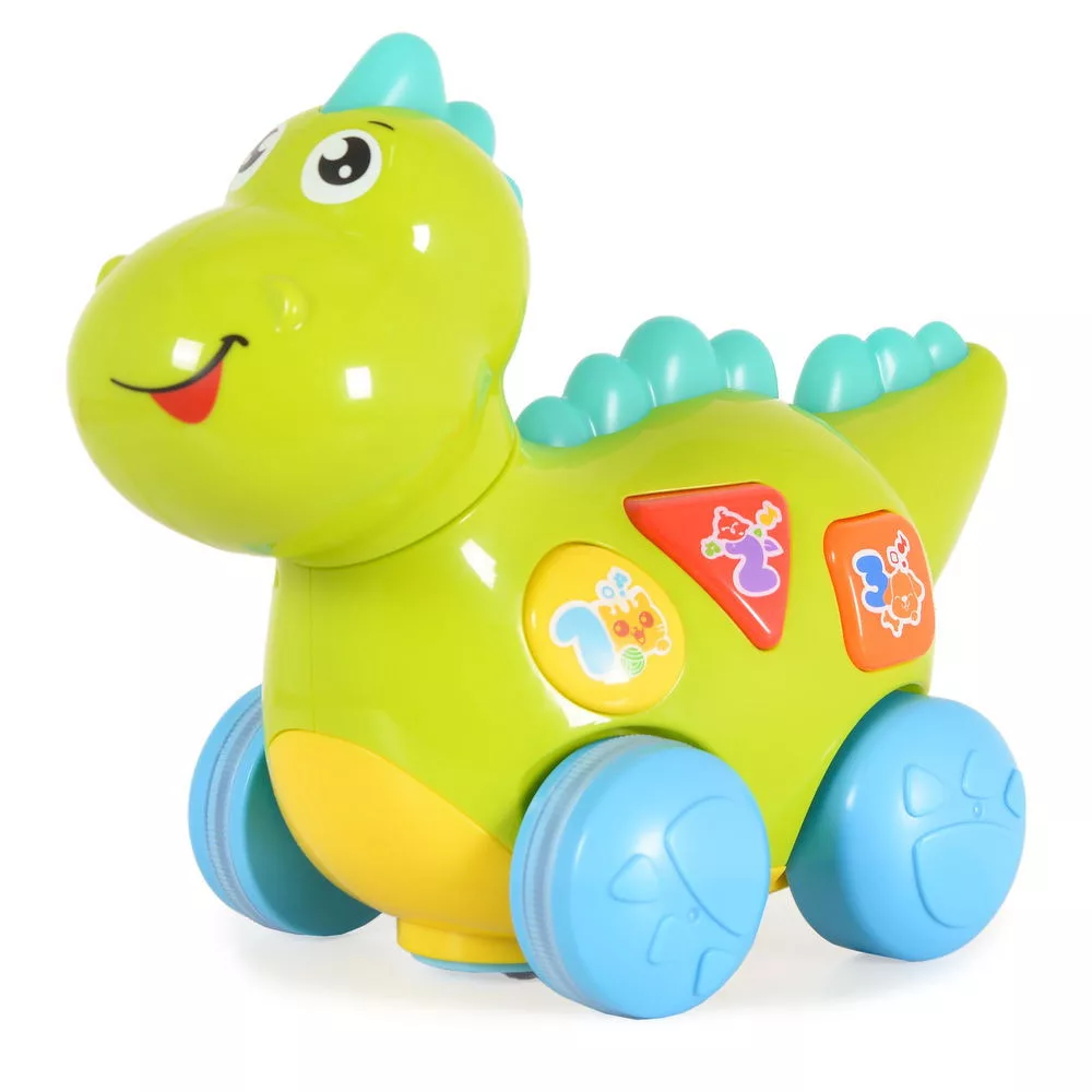 HOLA bébijáték tanuló dinó activity kerekekkel, gombokkal, műanyag