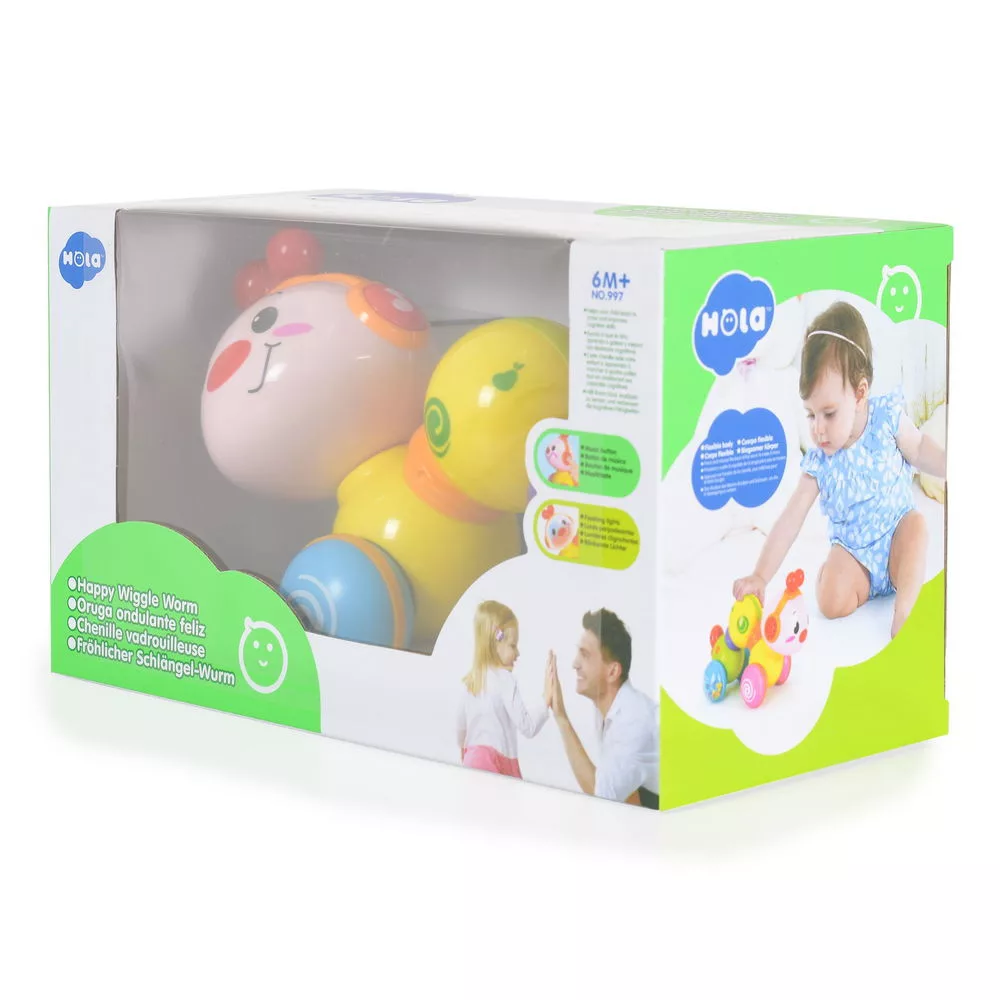 HOLA bébijáték vidám mozgó kukacka kerekekkel, műanyag