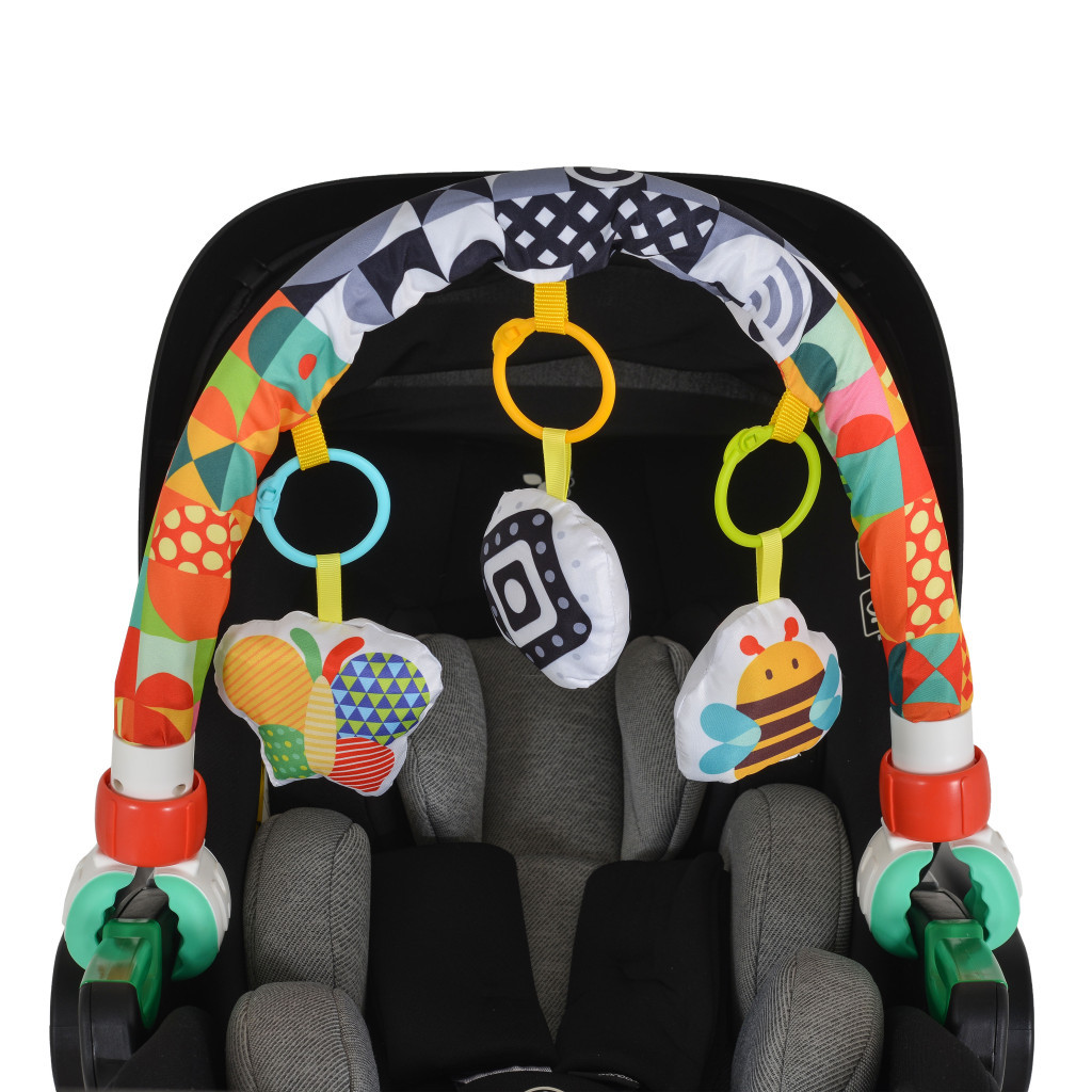 • Az ív könnyen rögzíthető kapcsokkal babakocsihoz, székhez vagy nyugágyhoz