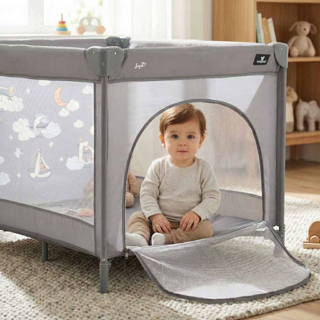 JOYZI összecsukható utazójáróka szürke színben, mely tökéletesen illeszkedik minden otthonhoz. Az összecsukható funkciója miatt különösen praktikus, hiszen könnyedén tárolható és szállítható. A járóka négyzet alakú, biztonságos és kényelmes játszóteret biztosít a kicsik számára, 6 támasztólábbal, kicippzárazható oldalfallal. A kicsik vidáman kibújhatnak a járókából. Tökéletes választás, ha szükséged van egy biztonságos és kompakt helyre, ahol a gyermek játszhat, miközben te a háztartási feladatokat végzed. A szürke szín pedig minden otthon dekorációjába jól illeszkedik. Használat után a saját táskájába téve könnyen tárolható. Az utazótáska tartozék.