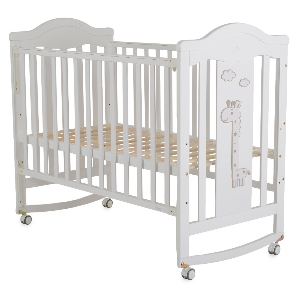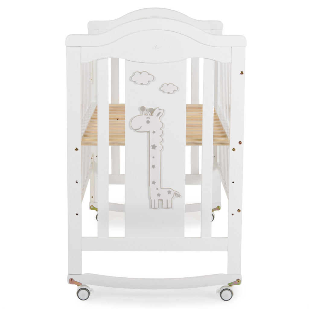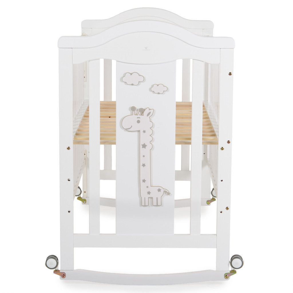JUNO fa babaágy zsiráf mintás, ringatós 60*120cm FEHÉR