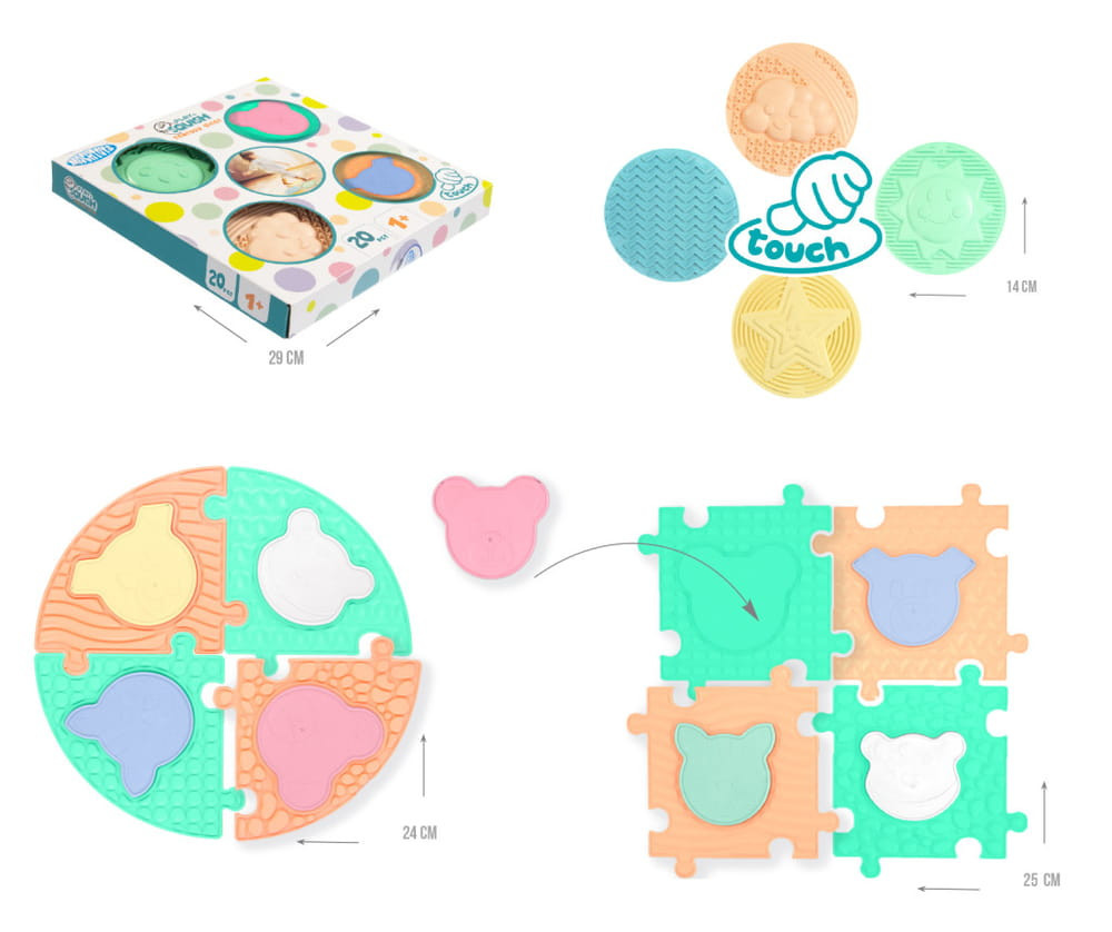MOCHTOYS Play&Squish szenzorikus szőnyeg -kerek tapilapok 4db + PUZZLE 8+8 db PASZTELL