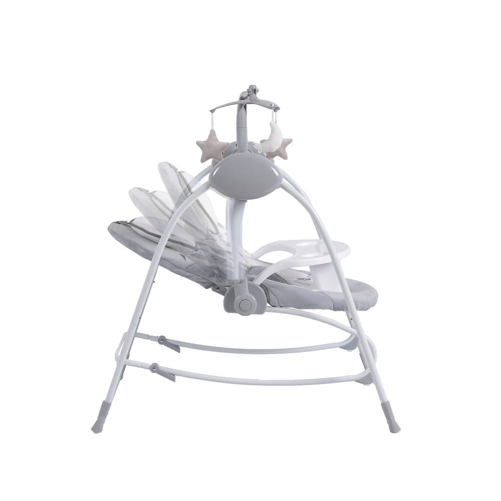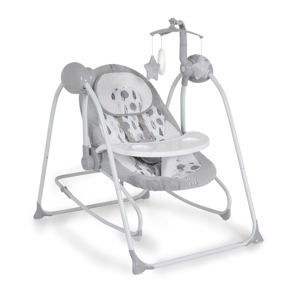 A RHEA hinta tökéletes választás minden kisbabának, elektromos üzemmódja pedig megkönnyíti a szülők életét. A hinta 0-6 hónapos korig, és maximum 9 kg-os súlyig használható. Az 5 különböző hintázási szint lehetővé teszi, hogy a gyermek saját igényeihez igazítsd a hinta mozgását. A termék kényelmes pihenőalapként is funkcionál, tehát nem csak a játék, de a pihenés ideje alatt is hasznos társ lehet. Szürke színben kapható, mely univerzális választás mind fiúk, mind lányok számára.