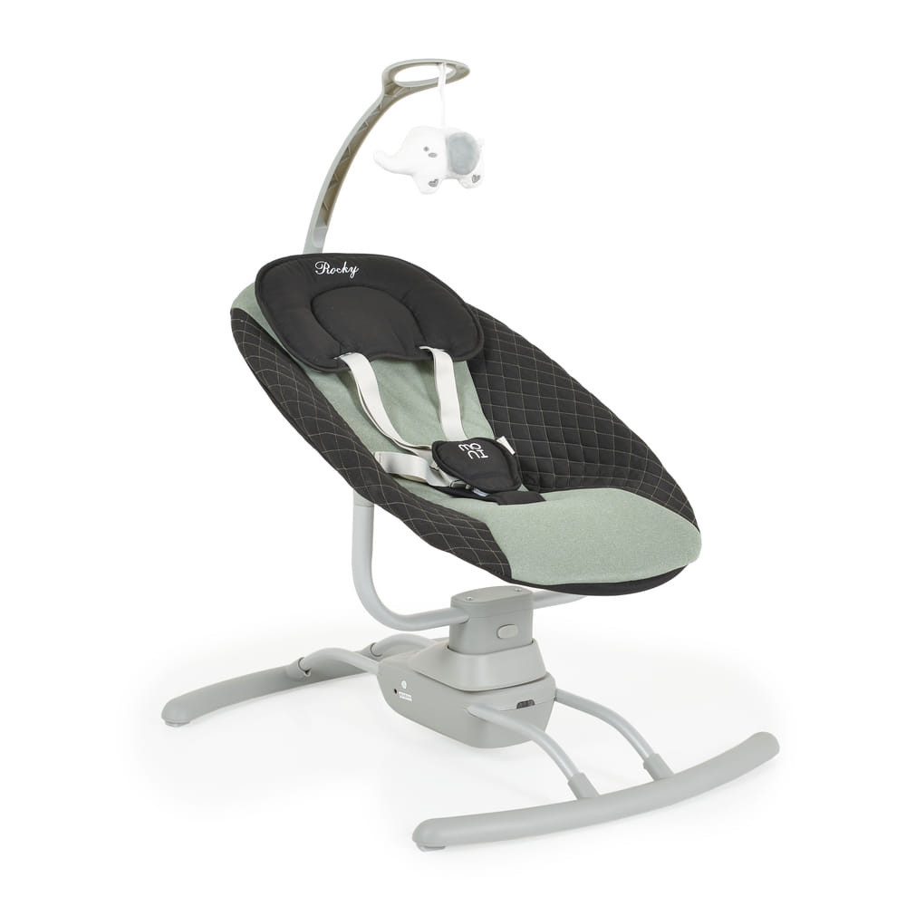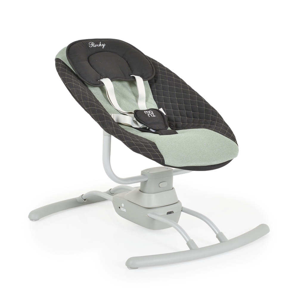 A "Rocky" egy elektromos baba hinta a Moni márkától. Színe zöld, ami igazán élénk és vidám környezetet teremt a kicsiknek. Születéstől 6 hónapos korig, maximum 9 kg-os súlyig használható. Funkciói között szerepel, hogy hintázószékként is használható. A hinta 3 különböző sebességgel rendelkezik, ami segít a babáknak könnyedén elaludni. A hinta design-ja kényelmes és biztonságos, így a szülők nyugodtan hagyhatják a babájukat benne pihenni vagy játszani. A hinta könnyedén összeszerelhető és könnyen tisztítható, így ideális választás minden babának.