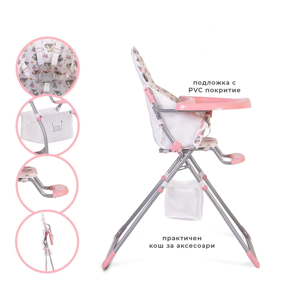 Ez a rózsaszín Moni Scaut etetőszék tökéletes választás minden gyermeknek. Az etetőszék tervezésekor a kényelmet és a praktikumot tartottuk szem előtt, így a szék könnyen összecsukható, ami megkönnyíti a tárolását. A szék az etkezések idejére biztonságos és kényelmes helyet biztosít a gyermek számára. A rózsaszín szín pedig vidámságot visz az étkezések pillanataiba. Az etetőszék Görögországban kapható különböző online áruházakban.