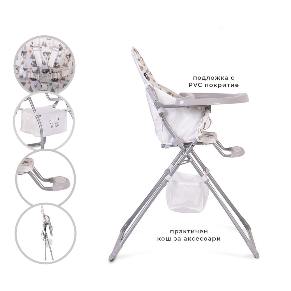 A SCAUT etetőszék a tökéletes választás minden 6 hónaposnál idősebb gyermek számára, akinek a súlya nem haladja meg a 15 kg-ot. A szürke színű, kompakt kialakítású etetőszék nagyszerűen illeszkedik bármely otthon stílusához. A praktikus kosárral ellátott etetőszék segít, hogy minden szükséges eszköz kéznél legyen az etetés során. Az etetőszék stabil, mégis könnyű, így könnyedén mozgatható és tárolható. A Moni Scaut etetőszék nem csak funkcionális, de stílusos is, így tökéletes választás minden modern szülő számára.