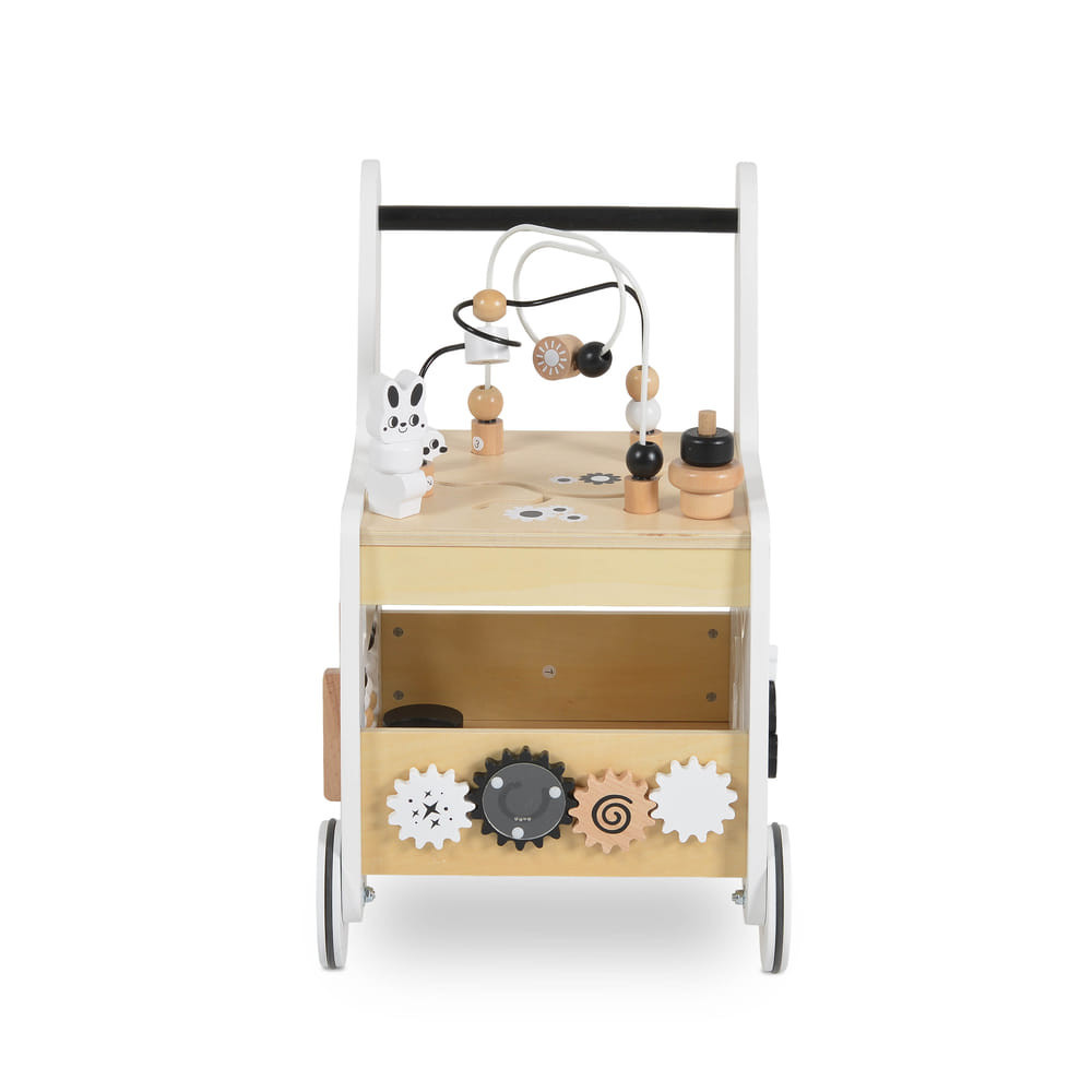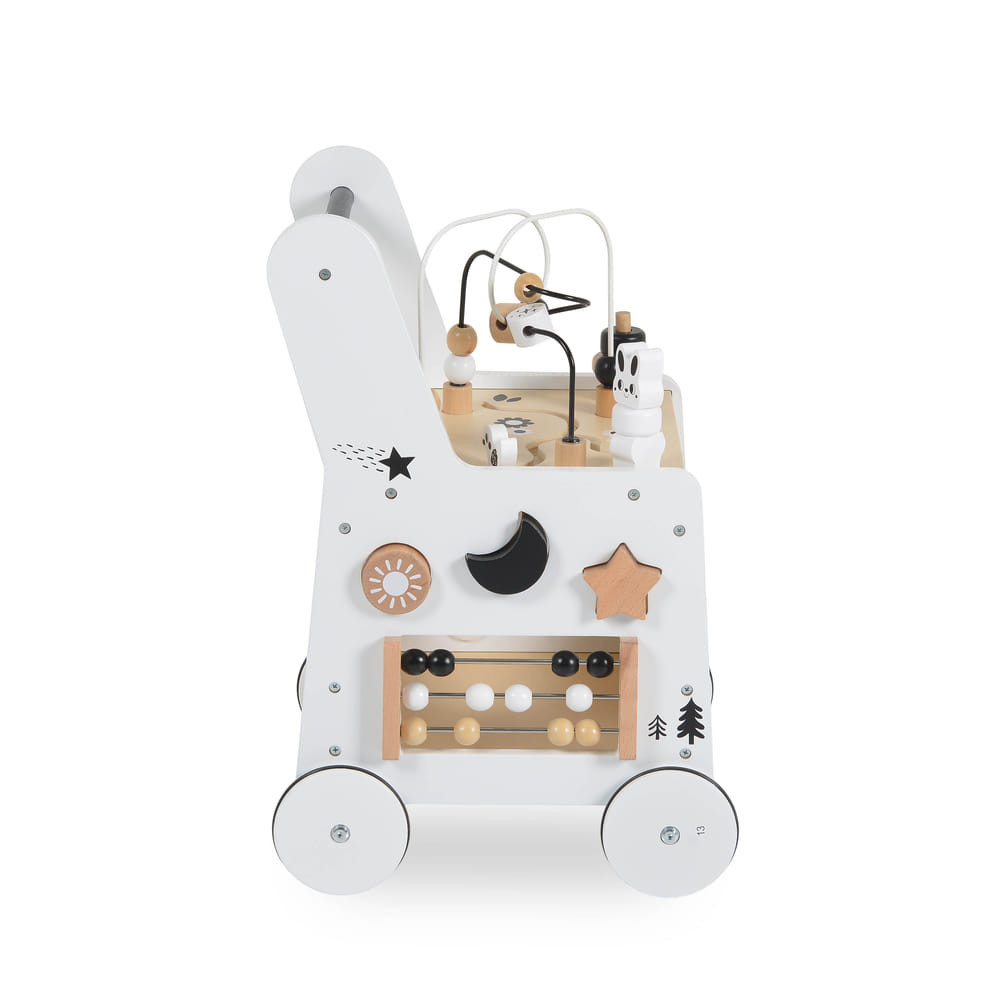Támogassa gyermeke első lépéseit ezzel a Moni Toys által gyártott, kiváló minőségű anyagokból készült fa járássegítővel. A járás közbeni stabil támasztás mellett különböző tevékenységeket is kínál, amelyek a játékidőt szórakoztatóvá és tanulássá teszik. Jellemzők és tevékenységek: • Az első számolási lépésekhez szükséges számológép • A koordináció és az ok-okozati összefüggések felfedezéséhez szükséges fogaskerekek • Gyöngyös labirintus • Különböző formákkal ellátott formaválogató Előnyök: • Támogatja a járást és önbizalmat ad az első lépésekhez • Fejleszti a motorikus képességeket, a logikát és a koordinációt • Ösztönzi a kreativitást és a kognitív fejlődést • Biztonságos, kiváló minőségű anyagokból készült • 12 hónapos és annál idősebb gyermekek számára alkalmas