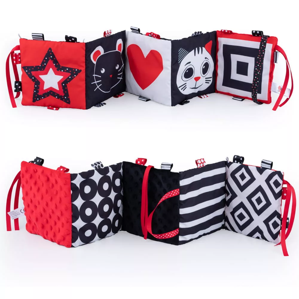 Főbb jellemzői között szerepel a kontrasztos színek és minták használata, amelyek stimulálják a csecsemők látását és segítik őket a vizuális fókuszálás és figyelem koncentrálásának fejlesztésében. A könyv különböző textúrái és tapintási élményei elősegítik a finommotoros képességek és a tapintás érzékelésének fejlődését.