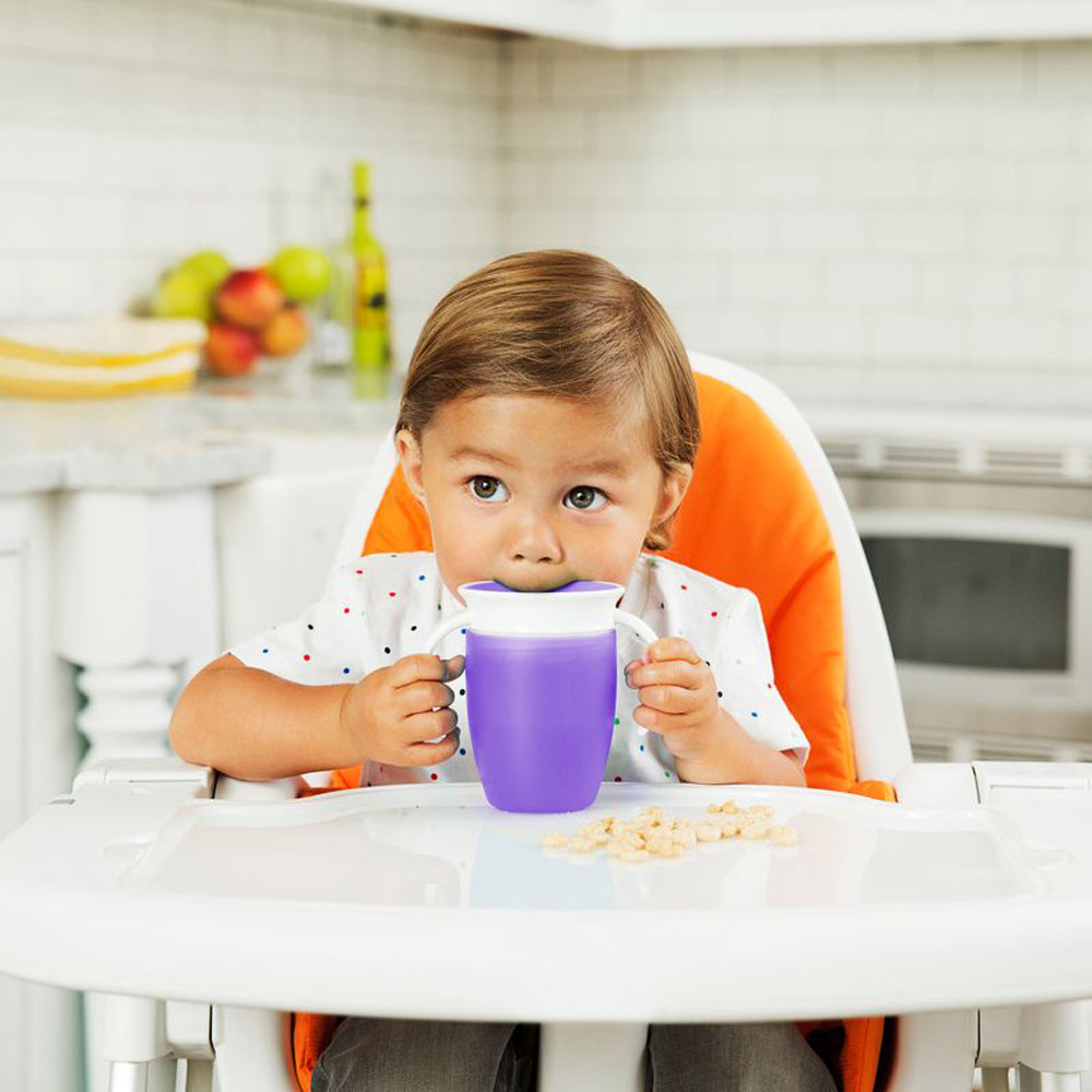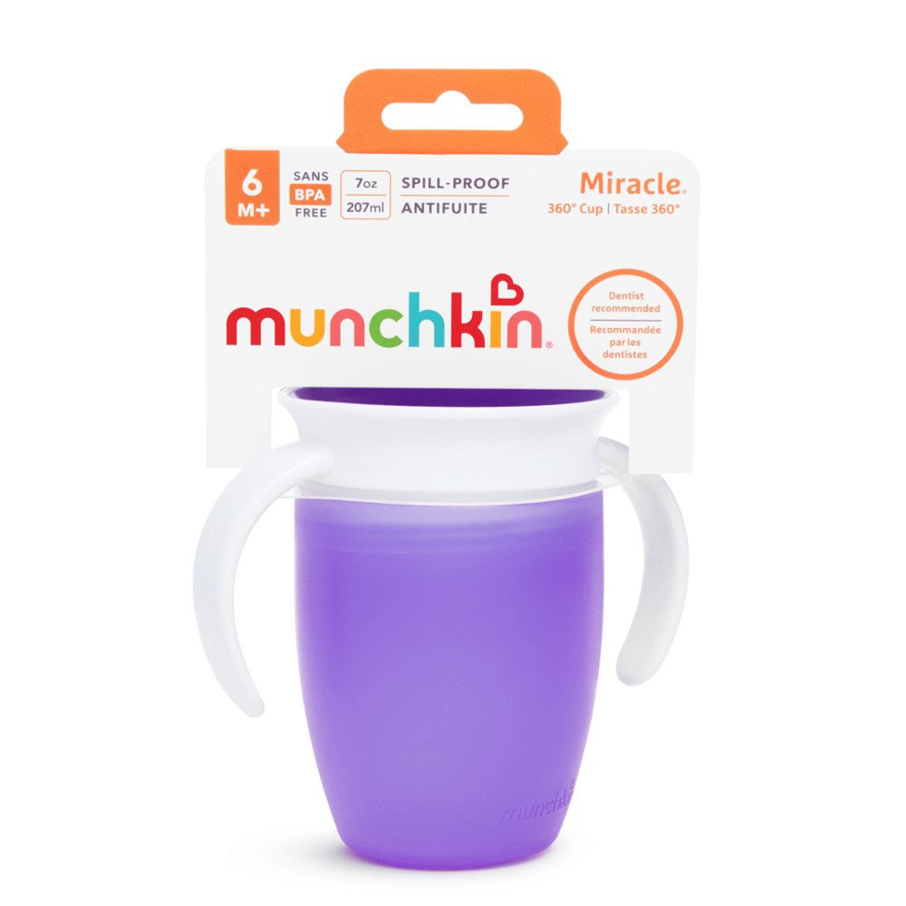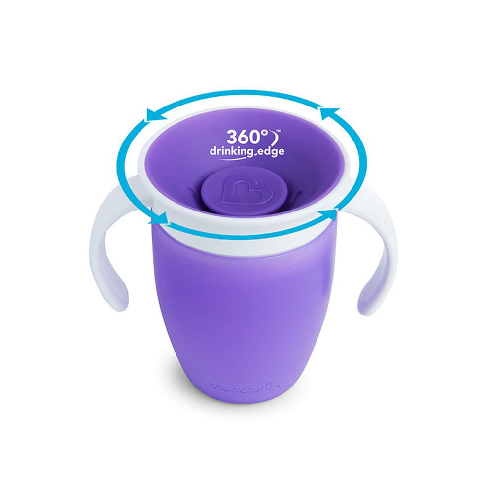 A Munchkin Miracle Cup egy 360 fokos itatópohár, amelynek pereméről bárhonnan ihat a gyermek, nem kell aggódni a csöpögés miatt. Speciális szelepes teteje használat után automatikusan visszazár.Főbb jellemzők:• 100% szivárgás-, és csöpögésmentes:A tető automatikusan zár, amint gyermeke abbahagyta az ivást, így nem lötyög ki sem a pelenkázótáskában, sem az éjjeliszekrényen, és még az éppen inni tanuló kisebb gyermekünkre sem. • 360 fokos kialakítás – bárhonnan ihat a gyermek• Könnyen használható: Nincsenek se szívószálak, se ivócsőrők és támogatja a gyerekek normál pohárra szokását.• Egyszerű tisztítás: mindössze 3 részből áll és szelepe eltávolítható, így nagyon könnyen tisztán tartható• Fogorvosok által javasolt: A perem körüli részekből való ivás, akárcsak egy hagyományos pohárnál, segít a gyermek szájának normál izomfejlődésében.Technikai jellemzők:• 207ml űrtartalom• Életkornak megfelelő folyadékáramlási sebesség• BPA-mentes • Mosogatógép felső rácsán mosható• 6 hónapos kortól ajánlott- Fontos! A termék egészségvédelmi és higiéniai terméknek minősül. Amennyiben a csomagolás felbontásra került, vagy a kipróbálás jelei látszódnak a terméken, úgy a 14 napos elállási jog érvényét veszíti a 45/2014. (II. 26.) korm. rendelet 29. § (1) bekezdése alapján.