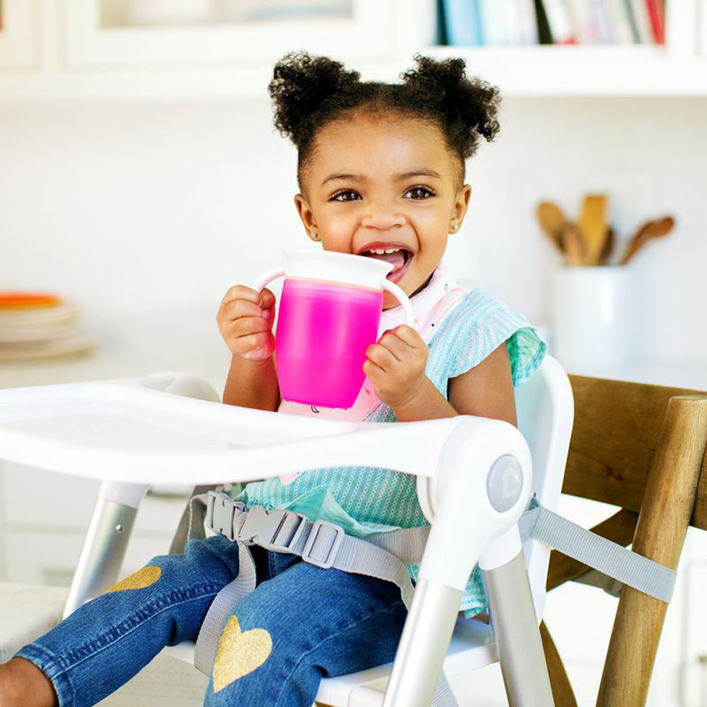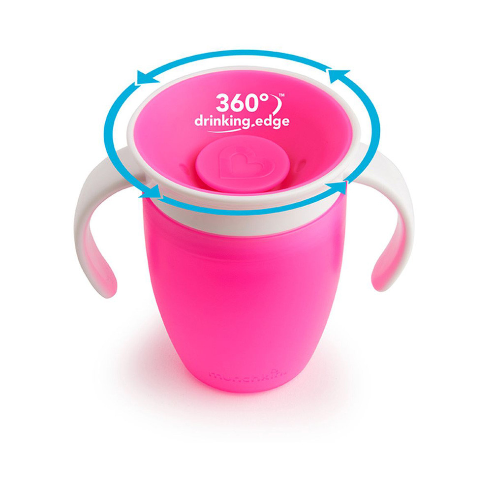 A Munchkin Miracle Cup egy 360 fokos itatópohár, amelynek pereméről bárhonnan ihat a gyermek, nem kell aggódni a csöpögés miatt. Speciális szelepes teteje használat után automatikusan visszazár.Főbb jellemzők:• 100% szivárgás-, és csöpögésmentes:A tető automatikusan zár, amint gyermeke abbahagyta az ivást, így nem lötyög ki sem a pelenkázótáskában, sem az éjjeliszekrényen, és még az éppen inni tanuló kisebb gyermekünkre sem. • 360 fokos kialakítás – bárhonnan ihat a gyermek• Könnyen használható: Nincsenek se szívószálak, se ivócsőrők és támogatja a gyerekek normál pohárra szokását.• Egyszerű tisztítás: mindössze 3 részből áll és szelepe eltávolítható, így nagyon könnyen tisztán tartható• Fogorvosok által javasolt: A perem körüli részekből való ivás, akárcsak egy hagyományos pohárnál, segít a gyermek szájának normál izomfejlődésében.Technikai jellemzők:• 207ml űrtartalom• Életkornak megfelelő folyadékáramlási sebesség• BPA-mentes • Mosogatógép felső rácsán mosható• 6 hónapos kortól ajánlott- Fontos! A termék egészségvédelmi és higiéniai terméknek minősül. Amennyiben a csomagolás felbontásra került, vagy a kipróbálás jelei látszódnak a terméken, úgy a 14 napos elállási jog érvényét veszíti a 45/2014. (II. 26.) korm. rendelet 29. § (1) bekezdése alapján.