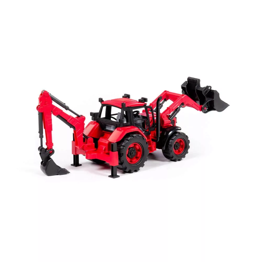 POLESIE 91857 kistraktor exkavátor+kanál 26cm PIROS