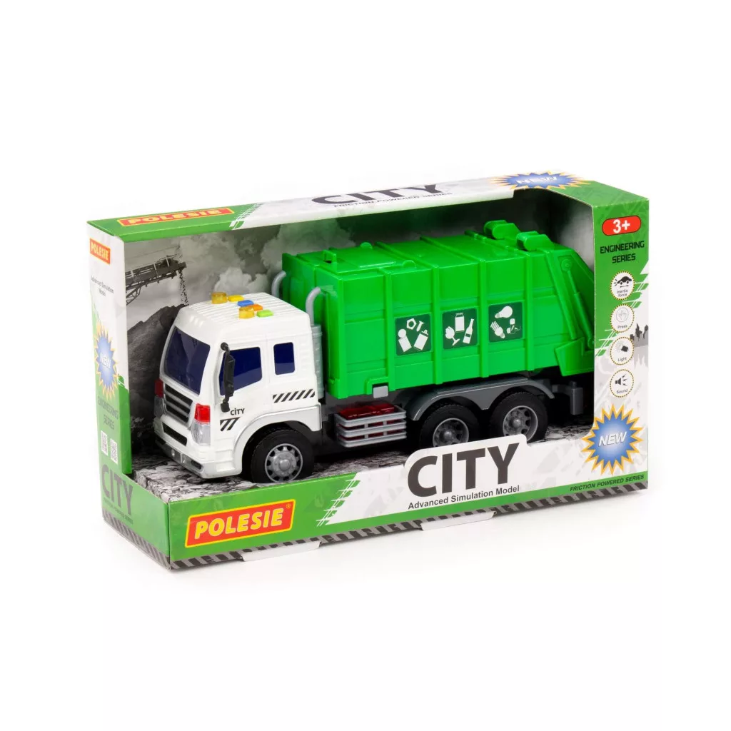 POLESIE műanyag szelektív kukásautó fényekkel, hangokkal SÖTÉTZÖLD