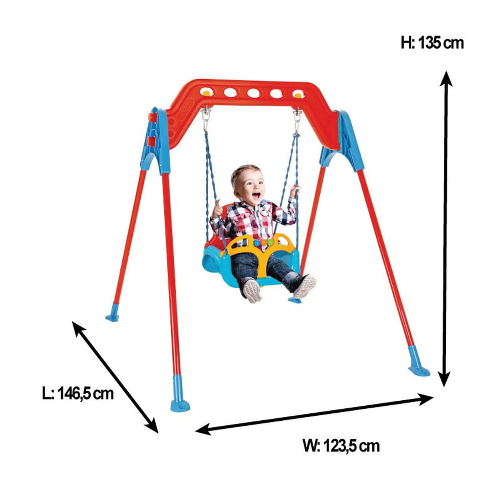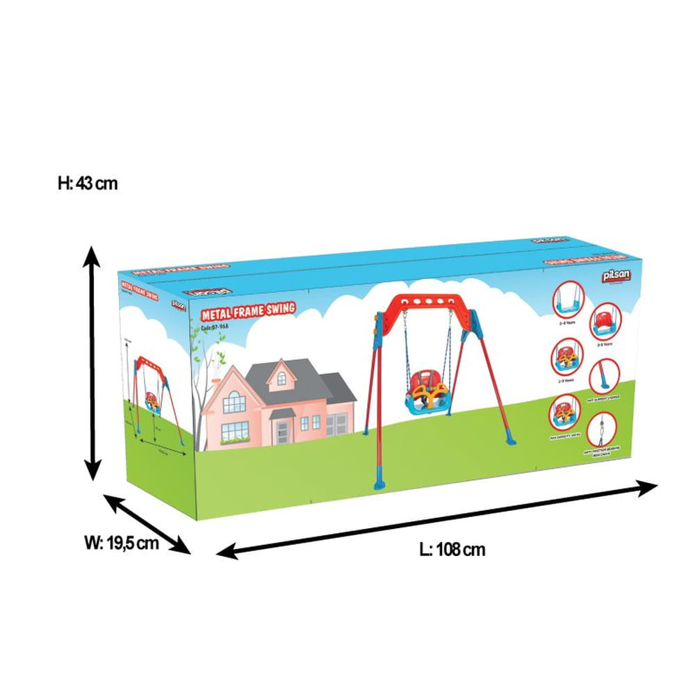 Gyermek hinta fém állványon Pilsan. 12 hónapos kor feletti gyermekek számára alkalmas. Olyan anyagokból készült, amelyek biztonságosak a gyermek egészségére. Maximális terhelhetőség 100 kg.