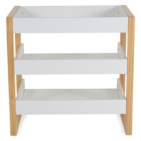 A Timber pelenkázóasztal célja, hogy a mindennapi babaápolást könnyebbé, biztonságosabbá és élvezetesebbé tegye. Természetes megjelenését robusztus és funkcionális kialakítással ötvözi, kiváló tartósságú és hosszú élettartamú, kiváló minőségű fenyőfából készült. Két tágas polc praktikus tárolóhelyet biztosít pelenkák, babaápolási cikkek és kiegészítők számára, így pelenkázás közben minden szükséges dolog kéznél van. A felső felület kényelmesen elfér egy 50 × 70 cm-es pelenkázó matrac, ami további kényelmet és nyugalmat biztosít. Tiszta vonalai és természetes fa felülete révén a Timber pelenkázó asztal sokféle belső térhez illeszkedik, a klasszikustól a modern skandináv stílusig. Cangaroo Timber pelenkázó asztal praktikus és stabil megoldás a baba napi ápolásához. Természetes megjelenésével és letisztult kialakításával könnyen illeszkedik minden belső térbe, ötvözve a funkcionalitást és a kényelmet.