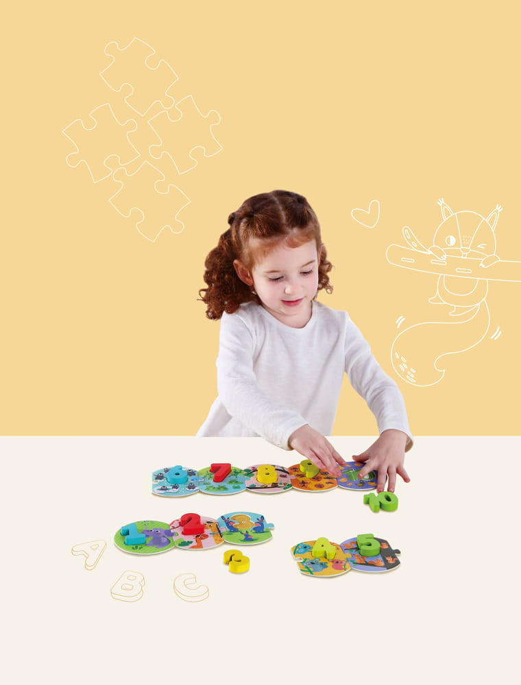 A cél, hogy a gyerekek összeillesszék a karton puzzle-darabokat, és a számjegyeket a megfelelő helyre tegyék.