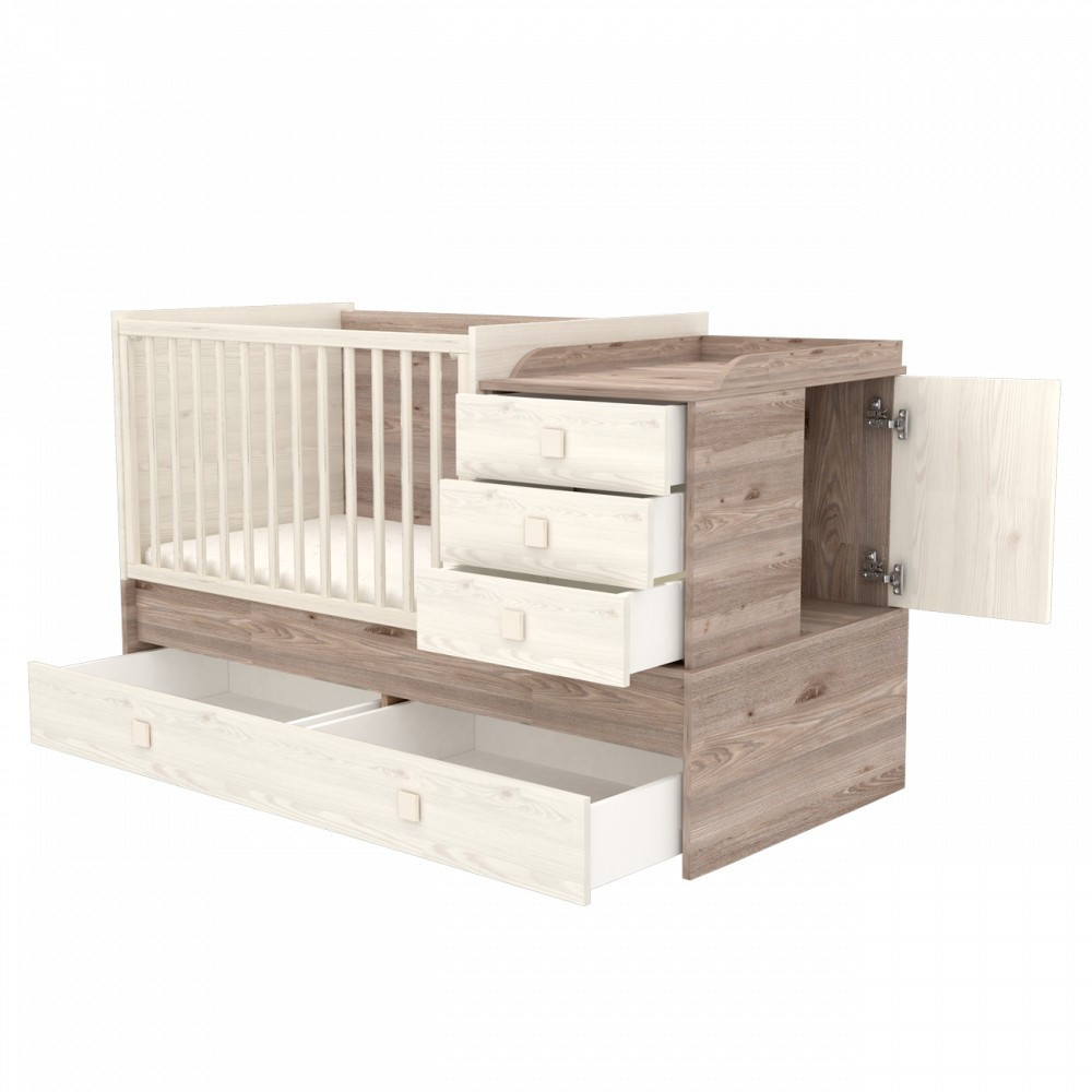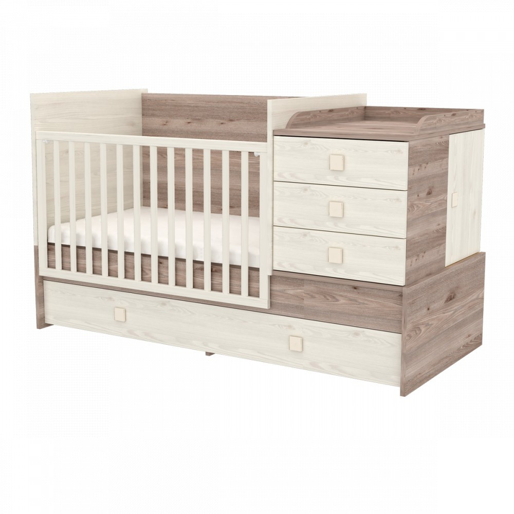 Babaágyból heverőt? Multi Kombi kiságyunkkal ez is lehetséges! Ez az elképesztően praktikus bútorunk rácsos-babaágyként körülbelül 3 éves korig, junior gyermekágyként pedig körülbelül 12 éves korig használható. A gyerekágy az oldalrácsok és a pelenkázó komód rész eltávolítása után egy ifjúsági heverővé és egy éjjeli szekrénnyé alakítható. Ha gyermek már elég idős a heverő használatához a kiságy átalakítható egy teljes értékű – gyerekággyá, íróasztallá és két különálló szerkénnyé (éjjeli és íróasztal). Az ágy könnyedén átalakítható, amihez nincs szükség pótalkatrészek megvásárlására, ezek a termékkel együtt járnak.
