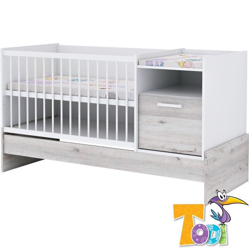 A maximális helykihasználást szem előtt tartva terveztük a Bee pelenkázóval kombinált babaágyunkat, mely 2 éves korig babaágyként, 2-8 éves kor között juniorágyként használható. A fekvőrács három magasságban állítható. A babaágy két oldala és a komód rész eltávolítása után ifjúsági heverővé alakítható, a komód pedig éjjeli szekrénnyé válhat. A babaágy átalakításához nincs szükség pótalkatrészek megvásárlására. A babaágyhoz opcionálisan vásárolható két részes gurulós ágyneműtartó is segíti a kényelmes tárolást. A babaágy egyik oldala teljes lap, a másik pedig 2 kivehető pálcával rendelkező, bükkfából készült lapospálcás kivitelű oldalrács, ami egészségre ártalmatlan vizesbázisú lakkal van felületkezelve. A bútortestek és frontok élei 2 mm vastag Pvc-vel (un.:ABS) kerülnek élzárásra, melyek a hagyományos élfóliákhoz képest sokkal magasabb élettartamot biztosítanak. A gyerekágy lapra szerelve kerül becsomagolásra, az összeszerelési útmutatót mellékeljük, amivel könnyen összeszerelheti bútorát. A Bee bútorcsaládunk minden elemét fékezős ajtóval és teljesen kihúzható golyóscsapágyas fiókcsúszókkal ellátott fiókokkal gyártjuk.