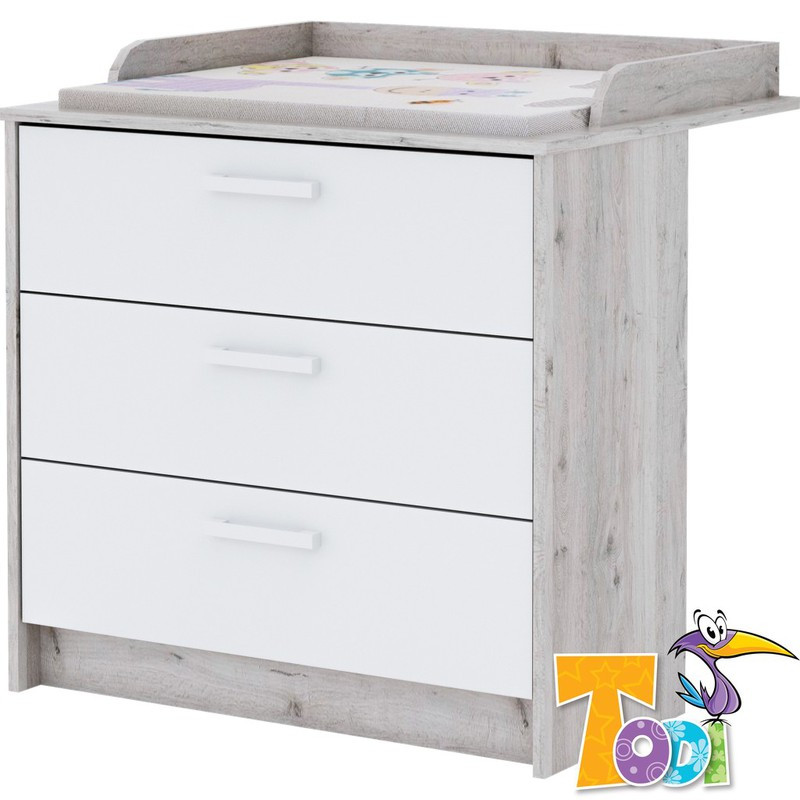A 3 fiókos komódot egészíti ki pelenkázóvá- pelenkázó felület: 80x70cm
