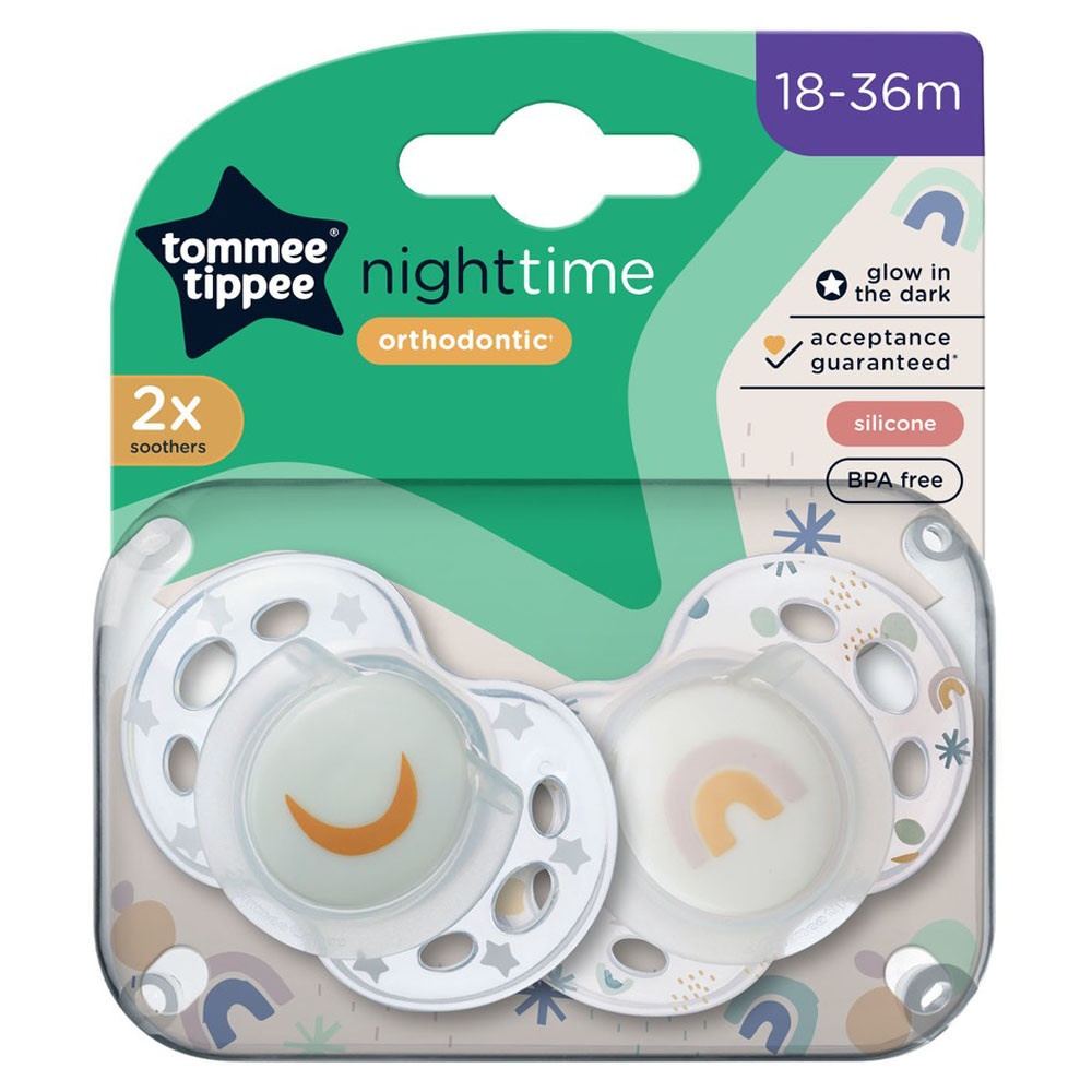 A Tommee Tippee játszó- és nyugatócumik a legszigorúbb irányelveknek és biztonsági szabványoknak megfelelve, többféle méretben, folyamatosan megújuló mintákkal és színekkel készülnek.Szimmetrikus, ortodontikus kialakításúak, elősegítik a megfelelő fogazat és szájüreg fejlődését, a lágy szilikon cumi pedig tökéletesen illeszkedik a kis szájacskákba.A Night cumi hagyományos pajzs formával rendelkezik, a sötétben világító fogantyúja segítségével pedig könnyebb éjjel a sötétben megtalálni.Termék jellemzők:Szimmetrikus, ortodontikus formaVilágító fogantyú, hagyományos pajzsA cumifej megfordítható, így a baba könnyebben vissza tudja tenniHáromféle méretben: 0-6, 6-18, 18-36 hó2 db található a csomagbanBPA-mentes- Fontos! A termék egészségvédelmi és higiéniai terméknek minősül. Amennyiben a csomagolás felbontásra került, vagy a kipróbálás jelei látszódnak a terméken, úgy a 14 napos elállási jog érvényét veszíti a 45/2014. (II. 26.) korm. rendelet 29. § (1) bekezdése alapján.