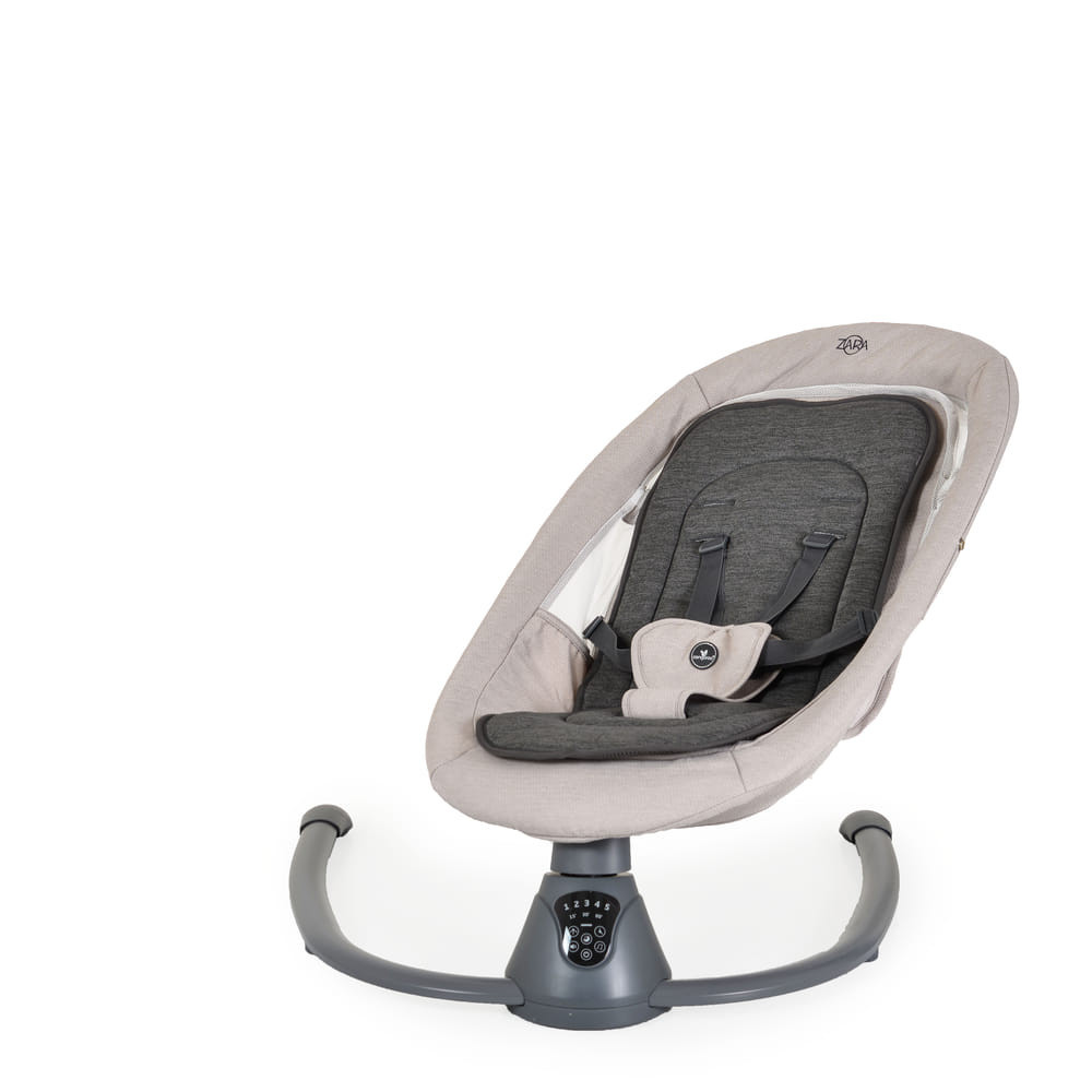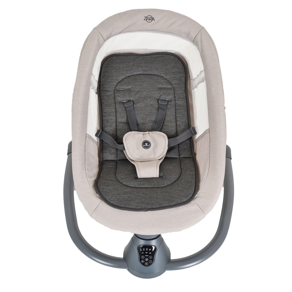 Zara babahinta 5 sebességi szinttel, 3 időzítési lehetőséggel és mozgásérzékelővel rendelkezik. A háttámla állítható. Van egy extra puha párna, kupola szúnyoghálóval és 2 plüssjáték. A hinta adapterrel vagy 4 db * AA elemmel (nem tartozék) működik. Távirányítóval vagy az érintőképernyő segítségével vezérelhető. Tökéletes termék ajándéknak a színes dobozával.