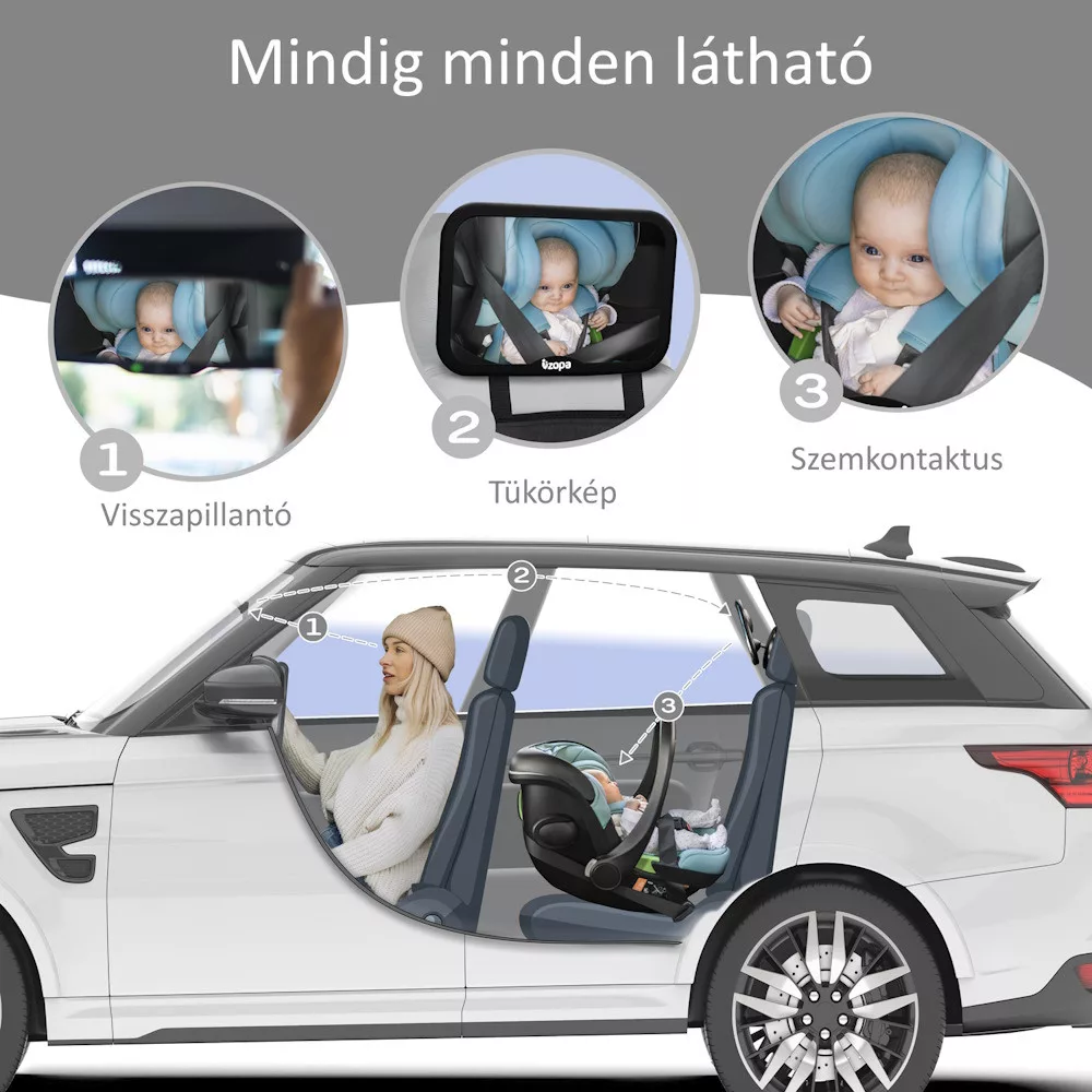 Az elegáns és modern megjelenésű ZOPA visszapillantó tükör kiváló segítőtárs, ha gyerekkel utazik. A tükörnek köszönhetően a szülő bármikor ellenőrizheti a gyermekét, ha a gyerekülés menetiránnyal szemben van. A konvex kialakítású tükör 360°-os képet kínál. A beállítható pántoknak köszönhetően a tükör egyszerűen rögzíthető a fejtámlára. (Vagy van kereszt alakú rögzítési lehetőség.)
