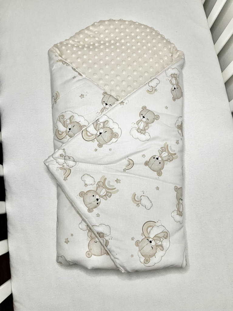 Kókuszpólya újszülötteknek – Álomfelhő Mackó Szivárványos, bézs minky babapólya