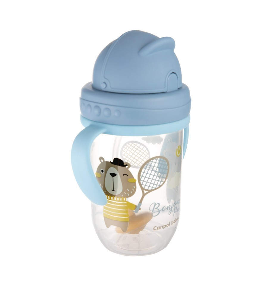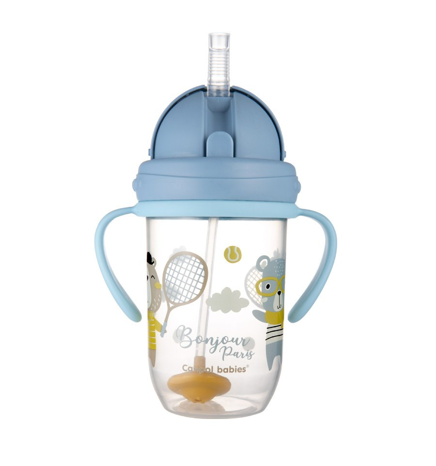 Új Canpol babies cseppmentes pohár nehezített szívószállal, amely támogatja a szájüreg, beszéd és fogak megfelelő fejlődését a gyermekek 99%-ánál*. Tökéletes választás a gyermekeknek, akik éppen az önálló ivás tanulását gyakorolják. Alkalmas 6 hónapos kortól. Az egyedi szilikonos nehezékkel kifejlesztett szívószálja követi a folyadékot, amelynek köszönhetően a gyermek az utolsó csepphez is hozzá tud férni bármilyen szögből. Az egyedi membrána a szívószálban csakis akkor teszi lehetővé a folyadék folyását, amikor a gyermek iszik, ezzel megakadályozva a folyadék szétfolyását. A modern fedélnek köszönhetően a szívószál könnyedén elrejthető, amely garantáltan megakadályozza a folyadék kiömlését.