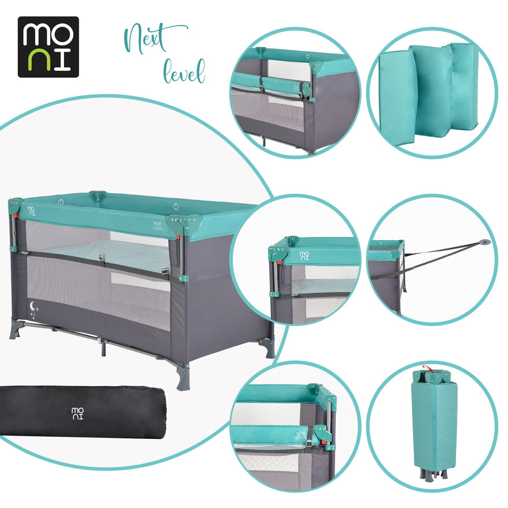 MONI Next level utazóágy lehajtható oldalfal 2 szint türkiz