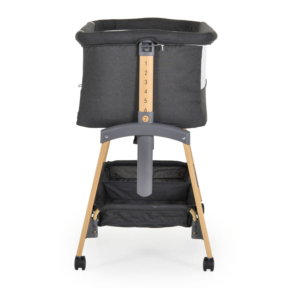 Alkalmas babáknak 0 hónapos kortól. A „szülői ágyhoz való rögzítés” funkció megkönnyíti az első hónapok éjszakáit, hogy a szülő mindig az újszülött mellett legyen. Alkalmas minden típusú ágyhoz, minimum 50 cm magassággal a padlótól és maximum 80 cm. Magassága 7 pozíció egyikébe állítható, a kiságy pedig 30°-os szögben dönthető, hogy segítse babája emésztését, javítsa a légzést és kezelje a refluxot. 4 kerék van ütközőkkel a könnyű mozgatáshoz. A szuperkényelmes matrac és a puha oldalak megfelelő helyzetben tartják babáját, és biztonságban tartják. Normál kiságyként használható. Van szúnyogháló és egy kosár a kiegészítőknek. FIGYELMEZTETÉS! A kiságy nem alkalmas olyan gyermekek számára, akik tudnak ülni, térdelni vagy felhúzni magukat. Ne használja ezt a terméket anélkül, hogy előbb elolvasta a használati utasítást. Ne használja a kiságy „Együtt alvó funkcióját”, ha a felnőtt ágya 50 cm-nél kisebb vagy 80 cm-nél magasabb a padló felett.